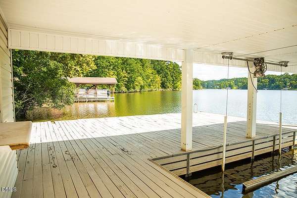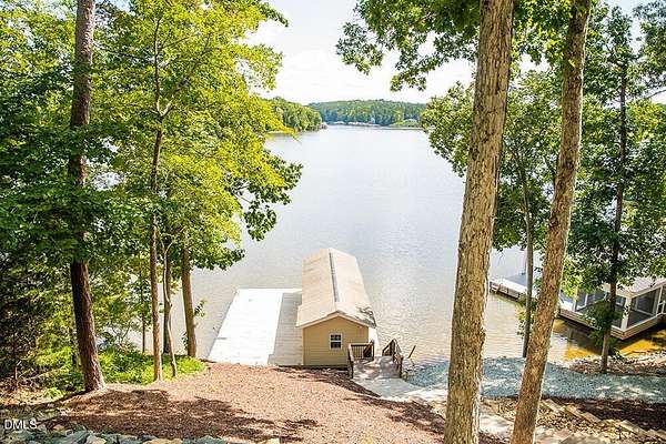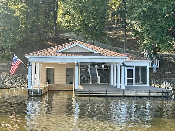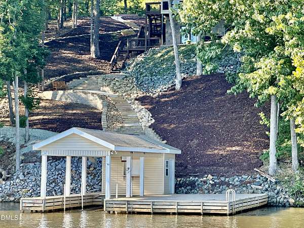 FABULOUS HYCO LAKE PROPERTY with a VIEW and DEEP WATER, consisting of TWO LOTS, TWO BOATHOUSES, and an adorable FULLY FURNISHED HOME!! One lot features a PICTURESQUE and COZY 3 bedrooms, 2 bath cottage, immaculately landscaped, and recently renovated in 2023. The main floor includes an open concept kitchen, dining area, and living room with wood-burning fireplace, along with a spacious primary bedroom and bathroom with walk in shower. Downstairs in the basement are two more bedrooms, a bathroom, and laundry. All bedrooms have breath-taking views of the lake! All furniture and furnishing convey! Enjoy the outdoors from the screened in porch or cozy up by the fire pit! The single-slip boat dock sits over about 11 feet of water!! The adjoining one acre lot includes a brand new 1800 sq ft CADILLAC of a boat dock, built entirely out of Trex! It features a screened in sitting area, large sun deck, covered sitting area (can be cut out for a second boat slip), boat slip, two jet ski lifts, and two storage rooms. The lot has a three bedroom perk site and would be perfect for another home if the one is not enough!! No restrictions!!