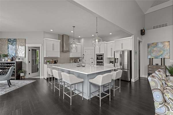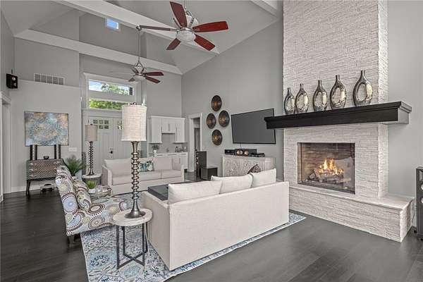- Cathedral Ceilings, Ceiling Fans, Eat In Kitchen, Granite Counters, Pantry, Programmable Thermostat, Quartz Counters, Split Bedrooms, Walk In Closets, Wet Bar, Window Treatments, Wired For Sound