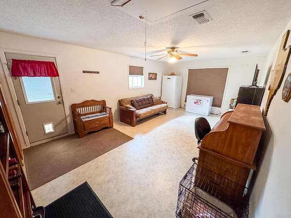 Versatility Meets Country Charm in Omaha's Countryside This property is the definition of versatility and country charm, offering not only a beautiful home but also the infrastructure to support a wide range of uses. Surrounded by the quiet beauty of Omaha's countryside, it provides the perfect setting for those who value wide open spaces, sustainable living, and the freedom to create a lifestyle that blends work, recreation, and family. The meticulously maintained brick home with its durable metal roof is framed by giant oak trees, a welcoming front porch, and the timeless image of a flag waving proudly in the breeze. Inside, the open-concept design connects the living, dining, and kitchen areas, creating a warm and inviting space for gatherings. The kitchen is thoughtfully laid out with a double sink overlooking the front yard, a breakfast bar, ample counter space, and abundant cabinetry. A brick wood-burning fireplace anchors the living area, complemented by built-in shelving that adds both character and functionality. With three bedrooms, two bathrooms, a large laundry room, and a flexible bonus/storage room, the home is designed to meet the needs of a modern family while retaining its classic appeal. Step outside and the property continues to impress. A covered back porch overlooks a fenced backyard, perfect for pets or play, while the surrounding acreage is fully fenced and cross-fenced, making it ideal for horses, cattle, or other livestock. The land includes two ponds, a feed pen, a chicken coop, and space for gardening, offering everything needed for a self-sufficient lifestyle. The outbuildings elevate this property into something truly special. A large metal barn near the house provides excellent storage, while the expansive multi-purpose shop barn opens up endless possibilities. Complete with a bathroom, office space, generous countertop work area, upstairs loft, covered storage for trailers or equipment, two large roll-up doors, and even an 18-wheeler loading dock, this facility is ready to serve as the hub of your vision. Imagine transforming it into a retail farm store showcasing homegrown beef, swine, and chickens, farm-fresh eggs, seasonal fruits and vegetables, homemade jellies, and old-fashioned foods that bring people back to simpler times. With the infrastructure already in placeincluding fencing, ponds, feed and tack building, chicken coop, and garden spacethe property is tailor-made for both production and retail. This is more than just a property its a lifestyle opportunity. Whether your dream is peaceful country living, raising livestock, operating a farm-to-table business, or simply enjoying the freedom of wide open spaces, this tract offers it all in one remarkable package. Rarely does a property combine the quintessential American dream home with the facilities to launch a thriving agricultural enterprise. Here, you can live, work, and grow all in one place, with room to expand as your vision evolves. Truly, this is a one-of-a-kind opportunity where the farm, the home, and the business come together seamlessly.