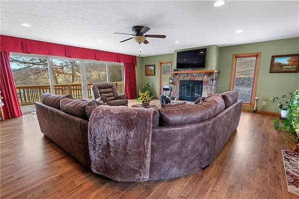 Wake up each morning to breathtaking sunrise views stretching across Table Rock Lake! This lovely country property provides the best of quiet living while being conveniently located near a boat ramp, making lake days effortless and fun. A circular drive leads to this well maintained home with 3bedrooms /2bathrooms where the spacious added family room with a cozy fireplace is the true gathering place. Recent improvements include fresh kitchen updates, flooring, a 3-ton HVAC system, new windows with large glass doors, wood decking with handrail, and more. Added amenities include a cellar for storage and storm safety and a large 3 car garage offering plenty of room for vehicles, lake toys or workshop space. A wonderful blend of comfort, updates, and views with the only thing missing is you. Propane tank owned my MFA. Seller will remove Starlink box from roof and in wall.