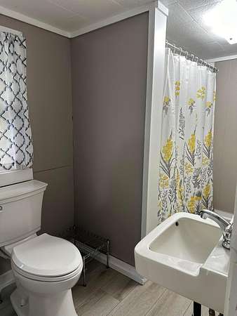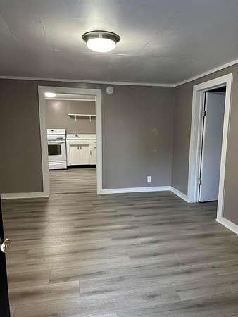 Duplex. One unit on the ground floor and the other upstairs. Downstairs has 2 bedrooms and 1 bath. Upstairs has 1 bedroom with an additional smaller room, a full bath and a laundry room with washer/dryer hookups. Both apartments have kitchens that include a stove and a refrigerator, and living rooms. Both are rented and are on a month to month lease. Total income is $1075 per month.