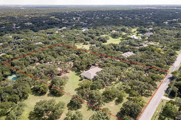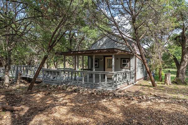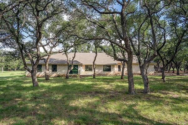 RARE FIND! This heavily wooded 5+ acre tract with a 3000+sf home offers the privacy, space, and flexibility that's nearly impossible to find this close to town. Nestled in a quiet, natural setting, the property includes a guest "cabin," a pole barn, and storage shed-ideal for hobbyists, small business owners, or horse enthusiasts. With room to roam, you can garden, raise animals, build a custom pool, add sports courts, or create the outdoor entertaining space. Whether you're looking to live off the land or just stretch out and enjoy the peace and quiet, this property gives you the freedom to do it all.The home is currently on well and septic, but city water and sewer taps are available at the street. Plus, low tax rate-another rare perk! Enjoy the best of both worlds: peaceful country living just 5 minutes from HEB/shopping/restaurants, etc. There's also great potential to subdivide-the lot could be split into two or even three parcels, offering investment or multi-generational living. Opportunities like this don't come along often.