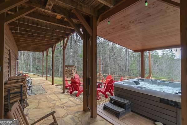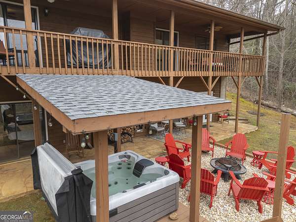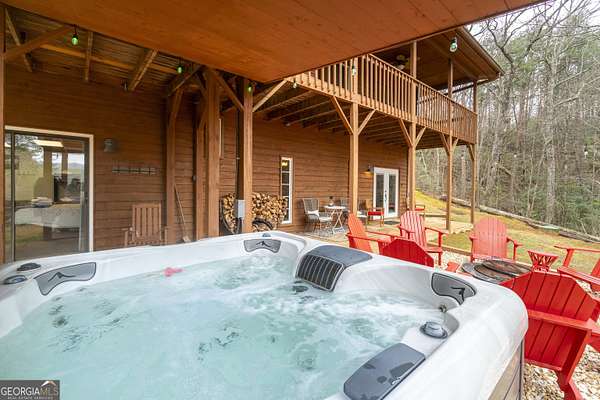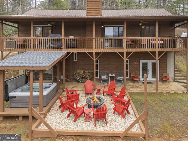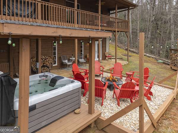 A Beautiful Mountain View comes with this Successful Short-Term Rental in Sautee Nacoochee just North of Alpine Helen, GA. Enjoy an equally beautiful traditional style mountain cabin! The view features the mountains of scenic Northeast Georgia. The home features an open kitchen/living room plan on the main level with split dual master bedrooms, each with an ensuite bath and large closet. The finished terrace level has a wet bar and efficient kitchenette area for added ease of entertaining. Lots of open space in the terrace level den with large screen TV and pool table. Also on the terrace level are a full bath and a large bedroom/bunk room. Currently used as a successful vacation rental property, all the bells and whistles are already in place. Tastefully furnished, decorated and appointed for gathering friends and family. The marvelous deck on the main level has access from the living area and a bedroom. The terrace level entices you out to the stone paved patio with an inviting firepit and covered hot tub area. New HVAC in 2024, New Water heater in 02/2023. Termite Bond in place and regular pest treatment are ongoing. Plenty of parking is an added plus. 2.6 Acres of private mountain paradise. Excellent location, just minutes from downtown Alpine Helen, (Fine Dining and Casual Dining, Shopping, Chattahoochee River tubing, Mountain Coaster, Oktoberfest and other activities), Unicoi State Park and Lake, Appalachian Trail Hiking, Waterfalls of the Chattahoochee National Forest, Lake Burton and all the Northeast Georgia attractions. A Short-Term Rental Host License is in place and is transferable to the next owner! Additional adjoining lot available for purchase. Septic system is rated for a 2 BR Home.