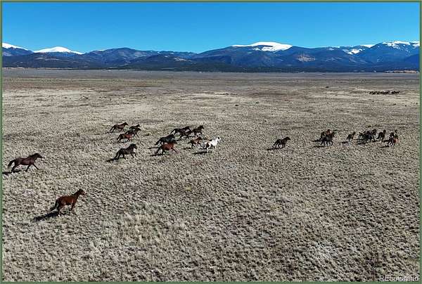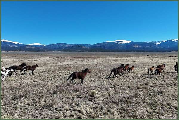 Roughly 150 wild mustangs roam this area in a dozen bands — direct descendants of horses brought by Spanish conquistadors in the 1500s. They've lived here for centuries and still move freely across the land. It's not uncommon to find a band grazing near your property on any given morning.