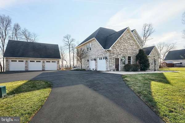 This stunning custom-built brick residence is perfectly positioned on a private, picturesque setting surrounded by rolling farmland and mature trees, offering timeless craftsmanship, thoughtful design, and serene country living. The heart of the home is an impressive great room open to a gourmet Rojahn Kitchen, designed for both everyday living and entertaining. The kitchen features stainless steel appliances, including a 5-foot-wide freezer and refrigerator, 6-burner gas stove with pot filler, double wall ovens, and a large island with seating for six. A butler's pantry/coffee bar sits just off the kitchen, with a walk-in pantry and powder room conveniently adjacent. Doors from the main living space open to a covered patio, creating seamless indoor-outdoor living while overlooking a private backyard oasis. The highly desirable first-floor primary suite offers a luxurious retreat with a spa-like bath featuring a soaking tub, stand-up shower, and double vanity sinks. Upstairs, you'll find five generously sized bedrooms and two full bathrooms, providing ample space for family, guests, or home offices. The fully finished lower level includes a spacious game room, exercise room, full bathroom, and a storage room with a hidden room concealed behind a built-in bookcase with a safe-an exceptional and unique feature. Outdoor living is truly next level. Fall in love with the large covered patio overlooking a saltwater in-ground pool surrounded by a Techno-Bloc patio. The pool features a rough-in for a waterfall, and a sliding board, all framed by breathtaking views. Adjacent to the pool is a fully equipped outdoor kitchen with bar seating, built-in grill, and a brick pizza oven, perfect for entertaining. A detached pool house includes a half bath and kitchen area, ideal for hosting and keeping pool-day messes contained, plus an outdoor shower nearby and an oversized playground just steps away. This exceptional property includes two separate parcels of land. The primary parcel features the residence on approximately 6 acres, mostly wooded for privacy with open space surrounding the home itself. The second parcel offers an additional 7 acres of open land, complete with its own separate well-providing incredible flexibility and future potential. Both parcels offer sweeping scenic views and a true sense of space and tranquility totaling 13 acres if purchased together. Car enthusiasts, hobbyists, and toy lovers will be thrilled with the garage space: an attached garage with entry into a spacious mudroom offering endless storage potential, plus two brick detached garages totaling five bays. Both detached garages are heated and feature walk-up second floors ready to be finished, with one oversized bay ideal for storing an RV or boat. A basketball court in front of the garage adds even more recreational appeal. Additional features include a whole-house generator, an alternate stand-alone wood heating system which heats not only the home but also heats the 3-car detached garage and the pool. There's also a 5-zoned speaker system allowing music enjoyment throughout the first and second floors and outdoor patio spaces. This one-of-a-kind estate delivers privacy, versatility, and exceptional amenities-perfect for those seeking refined country living with room to expand, entertain, and truly enjoy the lifestyle.