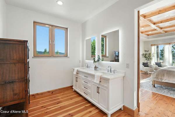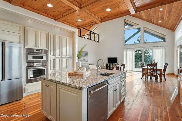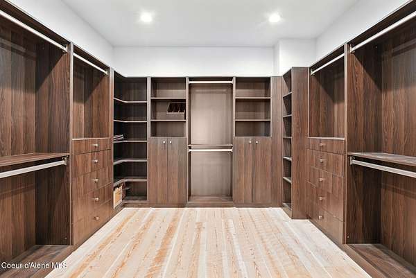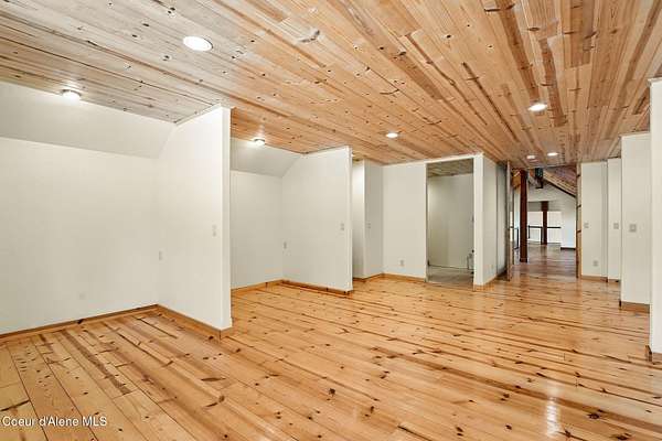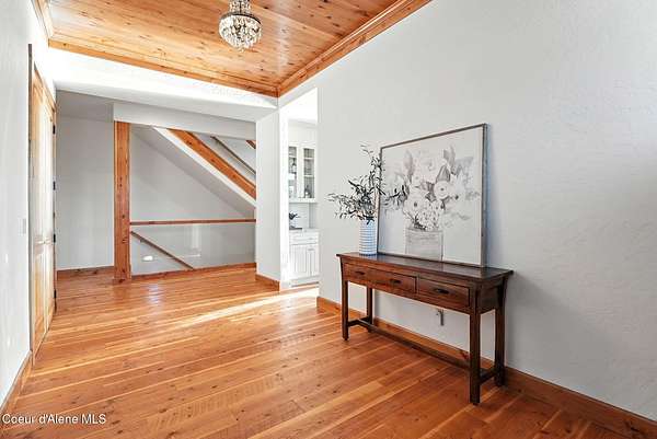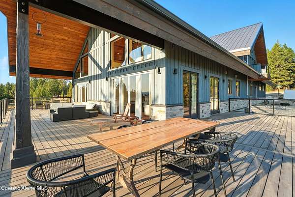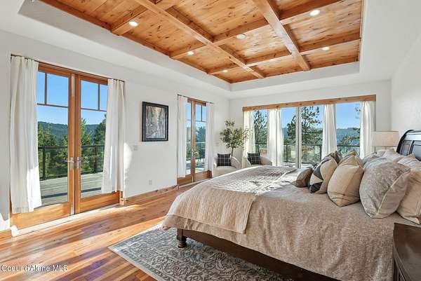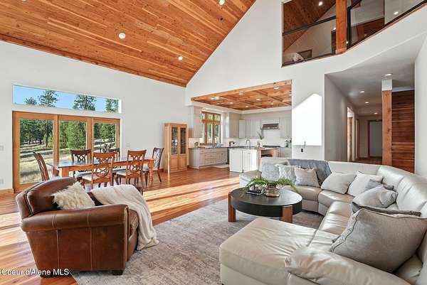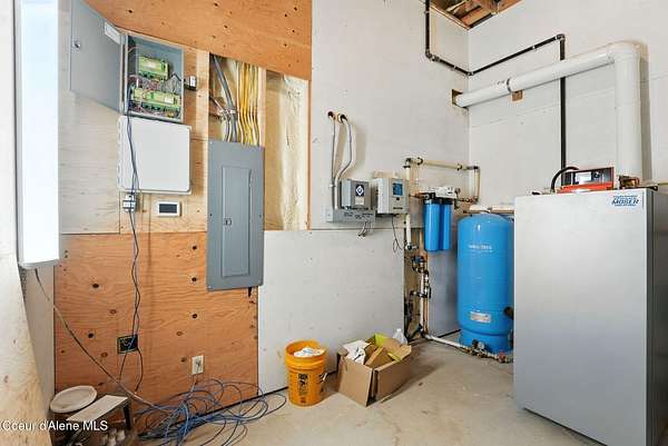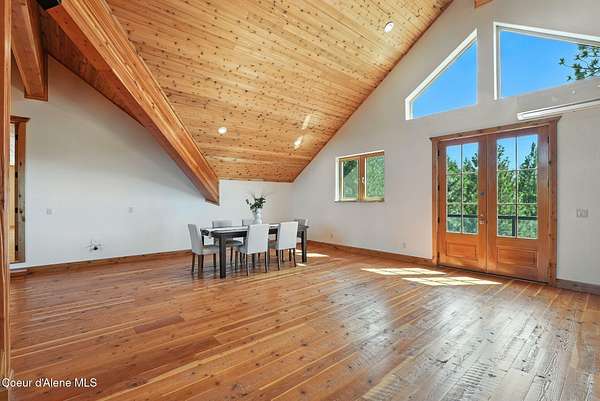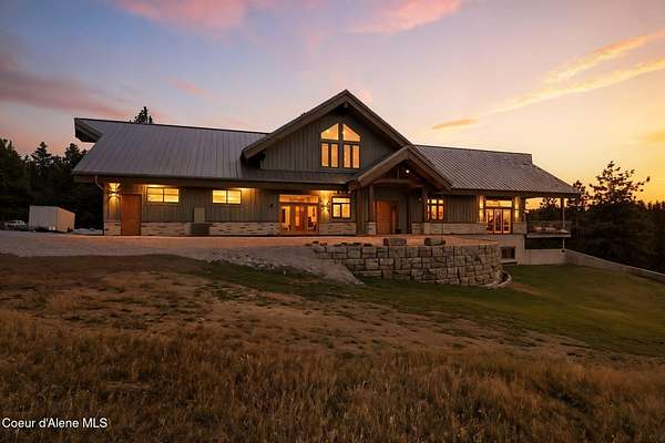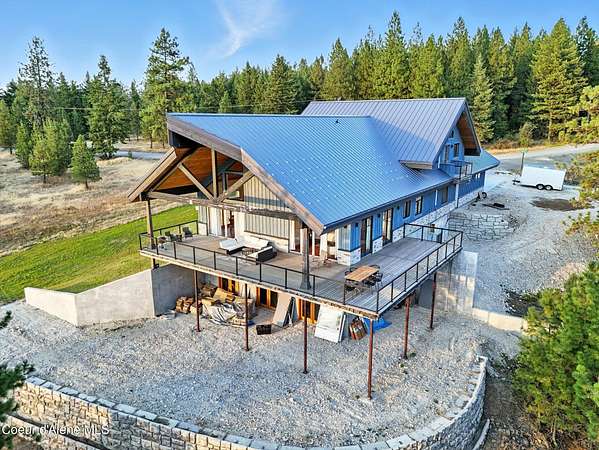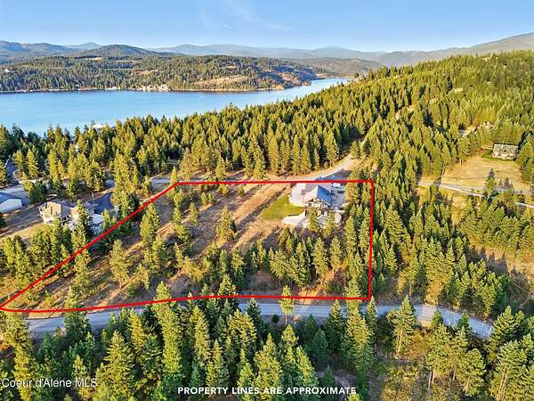 Welcome to a newly constructed truly extraordinary property--7,362 square feet of custom architecture, situated on 7.25 private acres overlooking Lake Coeur d'Alene, Neachen Bay, and Gozzer Marina. This three-level open-concept home is designed to showcase 270 degrees panoramic views from nearly every room, with a nearly 1,200 sq ft wraparound balcony that brings the outdoors in. Included with the property is shared ownership of a private 1.37-acre waterfront parcel featuring 16 boat slips, giving you effortless access to one of the most desirable sections of Lake CDA. The main floor stuns with custom hardwood finishes from floor to ceiling, and a chef's kitchen equipped with a granite island, Viking range/oven combo, secondary wall oven, two dishwashers, prep sink, custom cabinetry, and knotty alder ceilings. The dining and living space is flooded with natural light through floor-to-ceiling windows under a soaring 24' vaulted ceiling, opening to a spacious patio--ideal for entertaining.... ...and soaking in the view. The main-floor primary suite offers direct lake views and access to the patio through three separate doorways, creating a seamless indoor-outdoor flow. It features a California closet and a spa-style shower with raindown and body jets. A secondary main-floor suite includes a walk-in closet and luxury shower for guests or family. Upstairs, a large, light-filled family room offers versatile use as a game room, media lounge, or art studio, complete with breathtaking views and ample space to inspire. The unfinished walkout basement offers the opportunity to create 1-2 additional bedrooms, 2 bathrooms, a full kitchen, and living room perfect for guests, extended family, or rental potential. A 15' x 15' safe room provides added security and could double as an armory, valuables vault, or custom wine cellar. Outside, the expansive 7.25-acre lot provides room for a future shop, guest house, or additional amenities, giving you the flexibility to grow and tailor the property to your lifestyle. A fully finished 1,380 sq ft 4+ car garage offers ample space for vehicles, toys, and storage. You'll also benefit from a private well and an owned buried propane tank, adding long-term independence and efficiency. All of this is located just 23 minutes from Sherman Avenue in downtown Coeur d'Alene, offering the perfect blend of lakeside privacy and easy access to town. Property comes with 2, 3000 gallon cisterns and 2, 1000 gallon buried propane tanks.