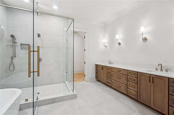 - Beamed Ceilings, Crown Molding, Entrance Foyer, Kitchen Island, Master Downstairs, Pantry, Walk-In Closet(s), Wet Bar