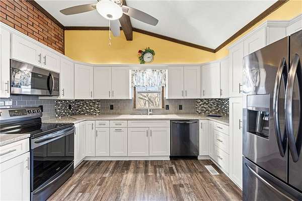 Enjoy the lake life in a small tucked away subdivision near Pomona Lake. The house is move in ready and includes a newly remolded kitchen, bathrooms and new carpet throughout the home. With the extra land that comes with this home you will have plenty of space to add out buildings, shop or garage space.