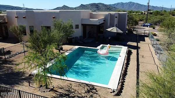 2,543 sq. ft. main residence, 2,316 sq. ft., guest residence includes 2c garage. A true masterpiece of design and craftsmanship, this estate offers refined living across 2 beautifully custom-built residences. Primary home showcases premium finishes, open-concept living, & resort-style outdoor space. The oversized guest house (built in 2020) features full kitchen, living area, & 2 bedroom suites-ideal for senior living w/ ADA accommodations. A rare opportunity to own an extremely unique property. Both homes have been meticulously maintained, both equipped w/ carbon filter water purification system. Main residence built with ICF concrete w/ expanded insulation, saving $$ on utilities. Private well, private pool, surrounding mountain views, spiral staircase observation deck, so much more...