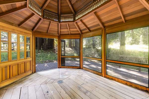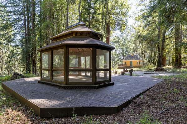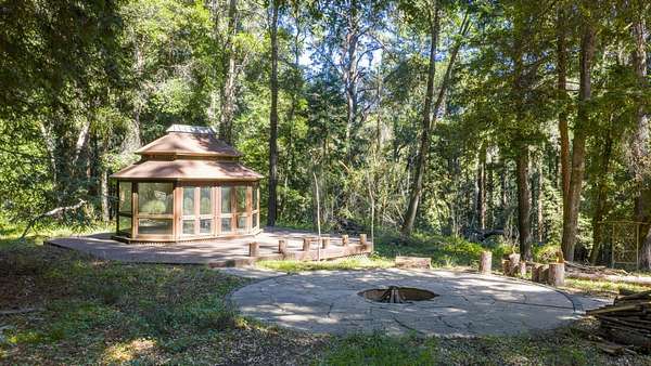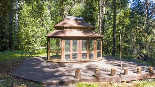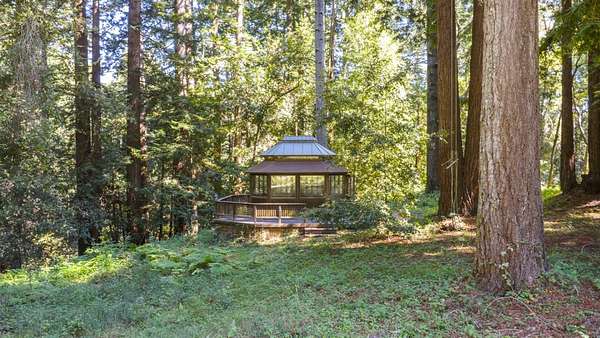 Private gated property in the hills of Aptos offering nearly 20 acres of forested land and a peaceful natural setting surrounded by mature trees and the quiet beauty of the Santa Cruz Mountains. The property includes two distinctive octagonal tea houses tucked among the trees, creating serene spaces for meditation, reflection or creative retreat. Additional small structure with kitchen & bath and a striking circular fountain feature approx 20 ft in diameter add character to the landscape. AI generated images are included to help illustrate potential uses. A prior Santa Cruz County application proposed construction of a new 3 bedroom residence with 3 car detached garage, suggesting strong potential for a future homesite. Peaceful setting immersed in nature while remaining just minutes to Aptos Village, beaches & Hwy 1. May be purchased individually or together with adjoining properties at 1080 Larsen Rd: ML#82038730 and 1073 Larsen Rd: ML# 82038841, offering the potential to assemble nearly 48 acres in the hills of Aptos.