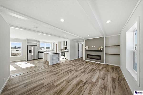 Show. Stopper. This NEW home hides out on the back street of an established Flaherty subdivision. The open concept living area is dripping with functional style. The second you walk in the door you are greeted warmly by the built in electric fireplace and mantle. The oversized kitchen island will be THE gathering spot, in this home, while the chef of the family enjoys all the amenities including an abundance of cabinetry, large pantry, farmhouse sink, tile backsplash and stainless steel appliance package! The spacious primary bedroom features walk in closets, his and her vanities and a walk in shower. Thats not even all... the utility room deserves a moment of its own with its' utility sink, cabinetry, exterior access, counter space and even an office area... Manufacturers and 5 year HVAC warranty transfers!