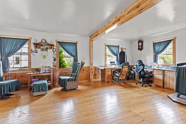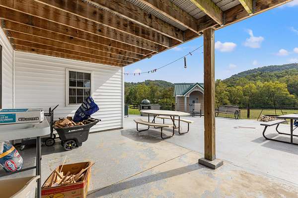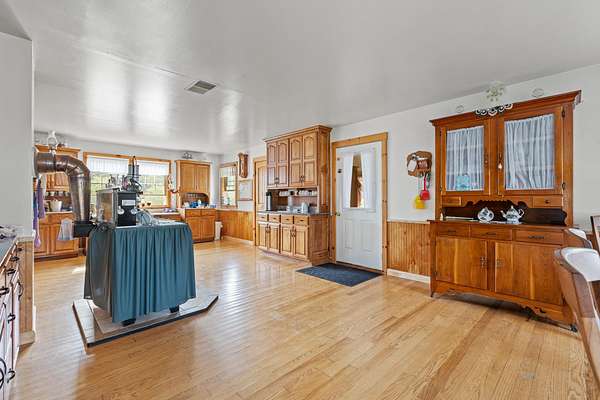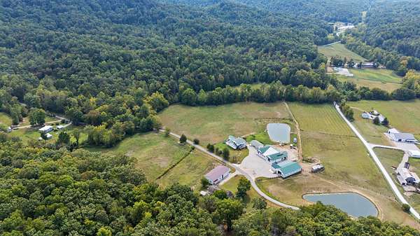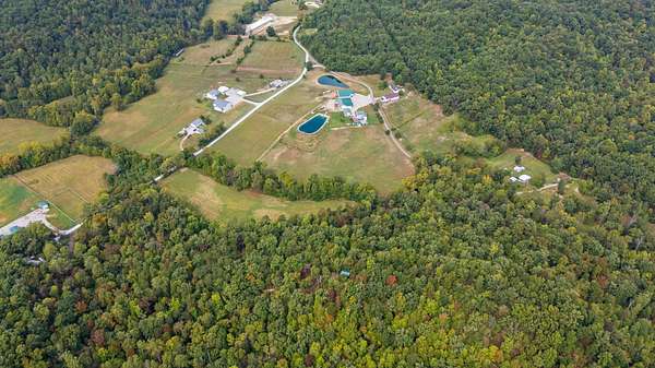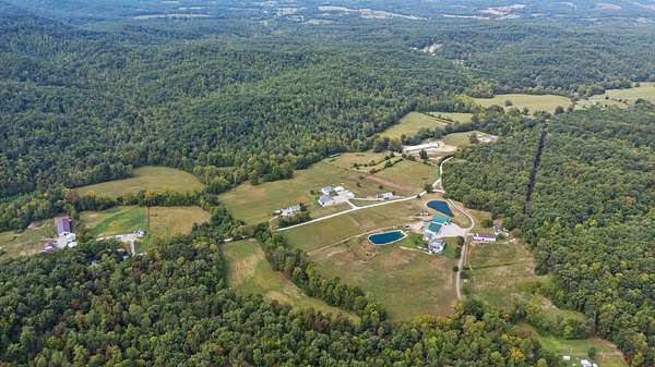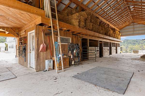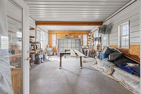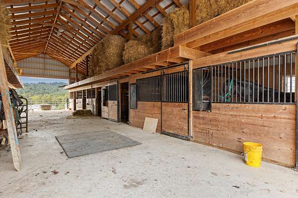 Welcome to the immaculate farm you've always dreamed of, with 15+/- cleared and fenced acres! This one offers a rare opportunity to embrace off-grid living without sacrificing comfort or craftsmanship. This thoughtfully designed Amish-built home features custom details throughout and is perfectly situated for those seeking self-sufficiency, agricultural use, or a serene rural lifestyle. Inside the home, you'll find creative and purposeful features such as a laundry chute with integrated ironing board storage in the kitchen, several working sinks with cistern-supplied water, and a wood/coal cooking stove in the upstairs kitchen, which comes complete with handcrafted hardwood cabinetry. The bonus canning kitchen in the basement includes durable poly-composite cabinets for easy maintenance, along with a wood-fired water heater and a tiled shower/laundry area nearby. Though the home does not have indoor bathrooms, two outhouses are in place and drain directly into the septic tank. Public water access is available just outside the home via three hydrants, and plumbing could conveniently be installed in the home. Enjoy generous outdoor living spaces, including a spacious front porch, massive back deck, and large patio ideal for entertaining. The charming custom children's playhouse and 14' x 22' foam-insulated ice house add even more function and charm to this homestead. Equestrian and/or livestock-friendly amenities include a 36' x 95' barn with 10 box stalls, an enclosed tack and feed room, and a 17' x 95' enclosed lean-to. A spiral staircase leads to an upper hay loft. The detached buggy shed/garage features a front porch and fully-insulated extra living quarters nearby, so you'll have plenty of room for surprise guests. The expansive 40' x 69' workshop boasts a new 25' x 79' fully insulated addition (2025) and an open front porch, ideal for storage or workspace overflow. Spend your sunny days fishing in the two stocked quarter-acre ponds, or take a quick swim on a hot summer day! Whether you're looking to work the land, raise animals, start a business without restrictions, or simply live off the grid in peace and privacy, this one-of-a-kind property has it all.