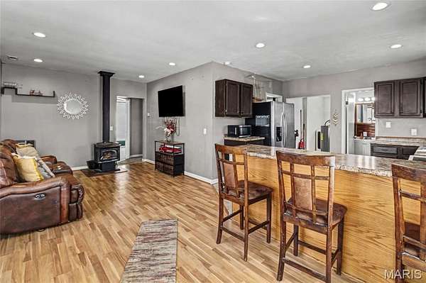 R7 School district, updated ranch-style home situated on 5.82 secluded acres, offering privacy and peaceful surroundings. This home features an eat-in kitchen, living room, laundry room, and den/office, creating a cohesive and functional layout.