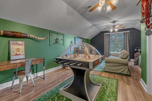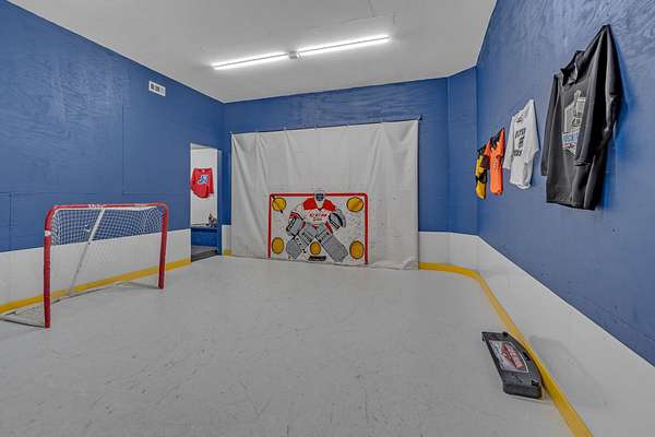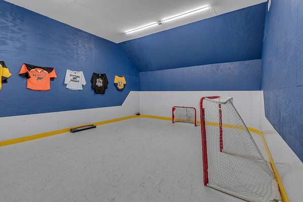 The living areas flow effortlessly, showcasing panoramic views that stretch for miles - truly "views to die for." You'll love the 300 sq. ft. bonus room (heated and cooled), currently set up as an indoor ice rink with synthetic ice, but easily convertible into a theater, gym, or playroom. A full-length unfinished attic offers even more potential for expansion or storage.