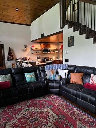 Step onto the expansive back deck and breathe in sweeping mountain views, the gentle flow of the river, and the symphony of wildlife--from deer and turkeys to bass and perch in the water. A 36'Wx36'L metal barn, ideal for sheltering farm equipment, machinery or your livestock. Whether you're soaking in the mountain views, after a day of fishing or gathering around the porch with friends, this cabin blends comfort with adventure.