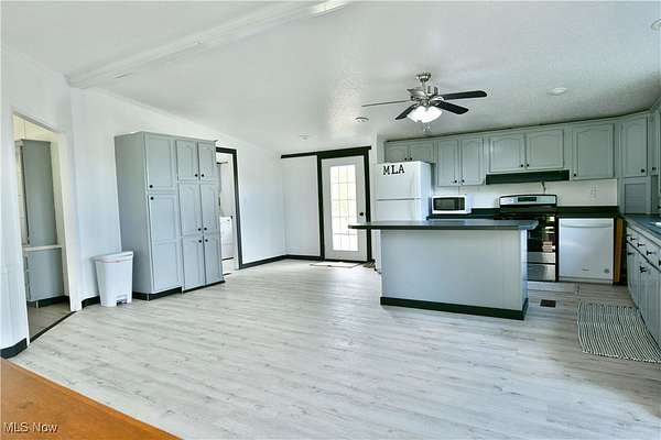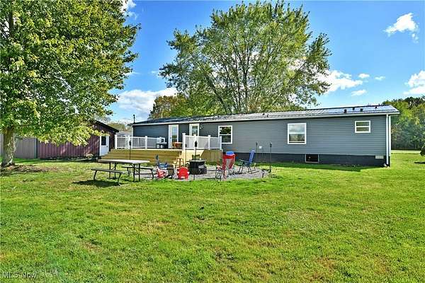 Cozy, country living with an open floor plan and plenty of land; this Southington charmer has it all! With great looks from the inside out, you'll first notice the high contrast exterior colors paired with its bold metal roof, all while a tall tree casts its leafy shade across the picket lined front porch. A sizeable, detached two car garage joins alongside with its additional steel siding for a durable, long-lasting finish. Meanwhile, an expansive rear deck area overlooks a large fire pit, perfect for relaxing on cool fall nights with friends and family. Inside, a spacious living room is lined with tall windows, filling the room with natural light and warming the hardwood styled flooring below. A secondary lounge awaits the prominent kitchen and its impressive layout that transitions into the formal dining area. The kitchen itself offers an advantageous center island that adds to the available countertop space. Around the corner, laundry services are available along with provisions for a half bath or utility tub. Running parallel to the living room, a pair of large guest bedrooms each join a full bath at mid hall. Completing the package, the larger master bedroom spills into a dressing and storage room, paired to a walk-in closet. A full private bath rounds things out with its tile lined shower. Call today for your private showing!