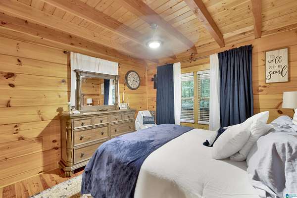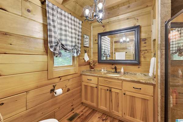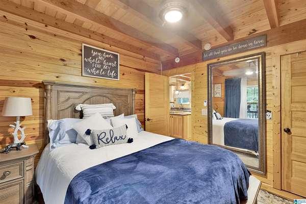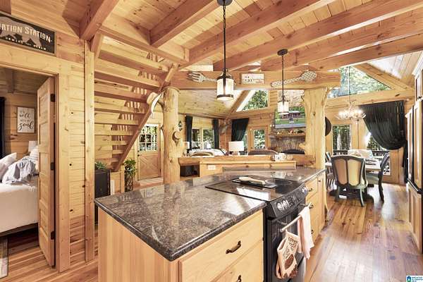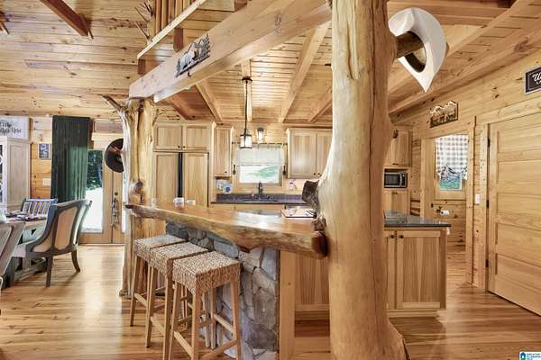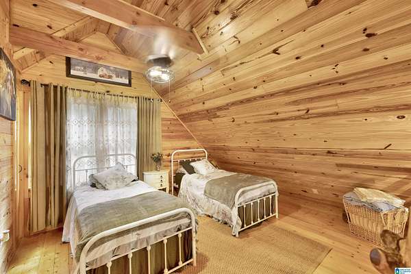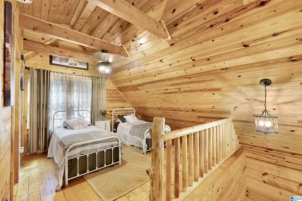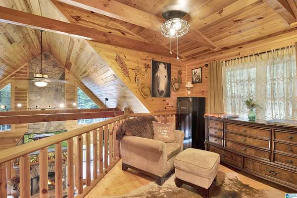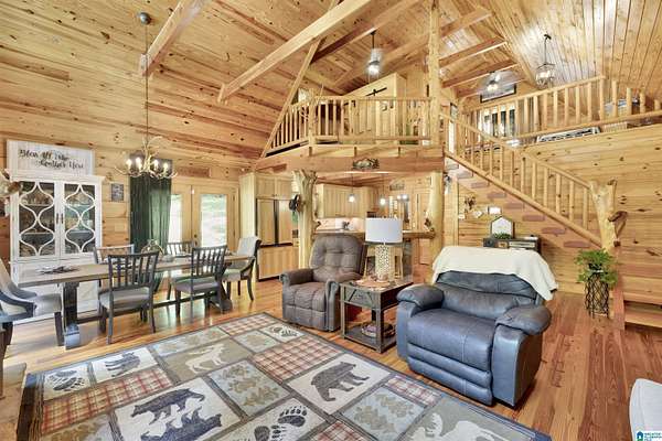 Gatlinburg-inspired retreat in Springville! Nestled on 18.5 acres of scenic natural beauty, this cozy cabin offers peaceful wooded views from nearly every room and the wraparound porch. Inside, you’ll find vaulted ceilings, exposed beams, abundant natural light, and a stunning floor-to-ceiling stone fireplace that anchors the open-concept living space. The kitchen features granite countertops, ample cabinetry, and a breakfast bar. With one bedroom plus a loft, there’s plenty of space for relaxation or guests. Outside, enjoy a detached 2-car garage with power and generous storage—perfect for equipment, recreational vehicles, or hobbies. A great opportunity for privacy and acreage in Springville!