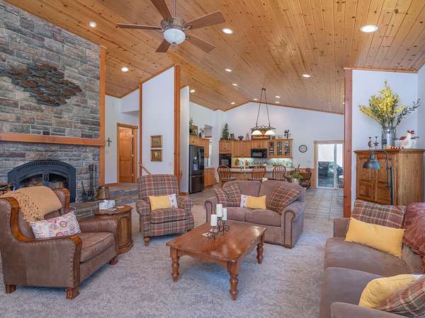 Discover your own private sanctuary in this beautiful ranch-style home located in the desirable Whitehawk Ranch. Set back on a spacious lot, this property offers the ultimate in peace and privacy, with stunning meadow views that can be enjoyed from nearly every room. As you enter, you'll be greeted by the inviting ambiance created by the pine vaulted ceilings. The thoughtful layout features a master suite positioned on the west side of the home, providing a quiet escape, complete with its own private deck-perfect for unwinding after a long day. In addition to the main living space, this property boasts a guest suite, a cozy studio equipped with a kitchen and bathroom, ideal for visitors or as a rental option. Outside, two expansive back decks enhance your outdoor living experience, offering a serene spot to relax and take in the breathtaking views. A generous 787 sq. ft. garage provides plenty of room for vehicles and storage. This is more than just a home-it's a lifestyle. Don't miss your chance to make this tranquil retreat in Whitehawk Ranch your own! Whitehawk Ranch development is a very special mountain community with so many amenities, including championship 18-hole golf course, tennis courts with area for our Pickle Ball devotee's, swimming pool, hiking, bocce ball, rec/weight room, community center, RV/boat storage area and onsite seasonal lodge facilities. Enjoy the scenic views, the peace and serenity, and immerse yourself in the beautiful surroundings.