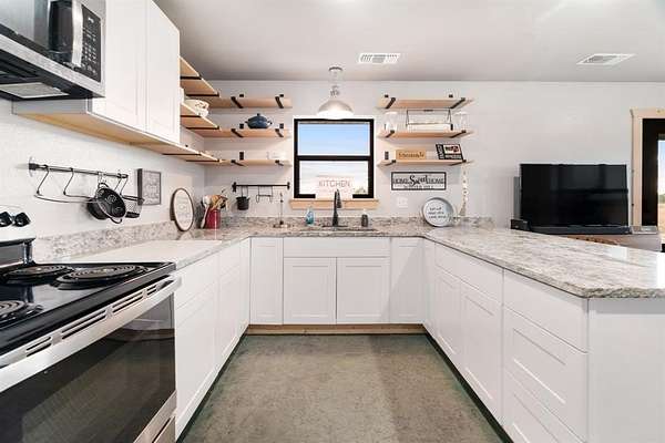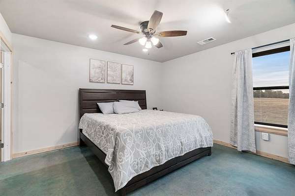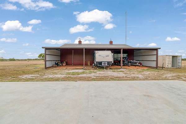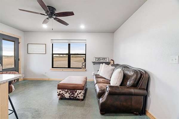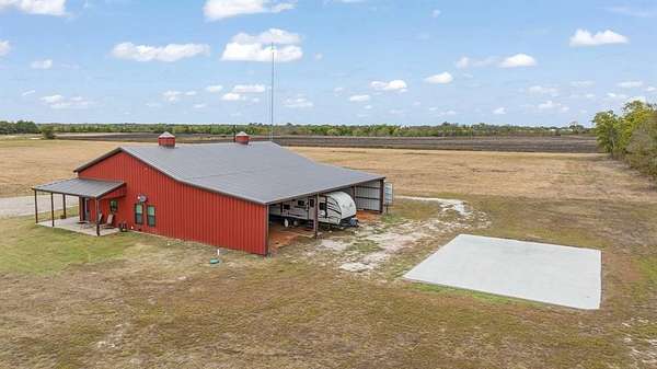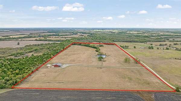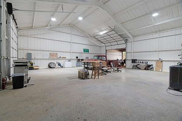 ~A True Country Retreat!~ Nestled at the end of a long private driveway, this stunning 4 year old Barndominium sits on 44+- acres of open pastureland with scattered trees and a tranquil pond that draws wildlife daily. With 3 sides fenced (back has posts no wire) and almost ready for livestock or horses, this ranchette is perfect for outdoor enthusiasts seeking peace, privacy, and plenty of space. Inside, the home boasts a thoughtfully expanded layout with a newly added second story featuring two spacious bedrooms, a full bath, and a cozy loft. The charming kitchen is complete with granite countertops, a breakfast island, and stainless-steel appliances. The downstairs primary suite offers two walk-in closets for ample storage. Connected to the living quarters is a massive 40x45 foam-insulated shop with three 12-ft commercial doors and dual access--ideal for pulling through boats or RVs. The shop also includes a half bath and a storage closet under the staircase. Out back, a full-length awning provides additional covered parking for ATVs, tractors, or campers, and includes a 50-amp plug for convenience. There is also a basketball court or use the additional slab to create a new outbuilding. Whether you're watching breathtaking sunsets or enjoying the serenity of country life, this property offers the perfect blend of functionality and natural beauty.