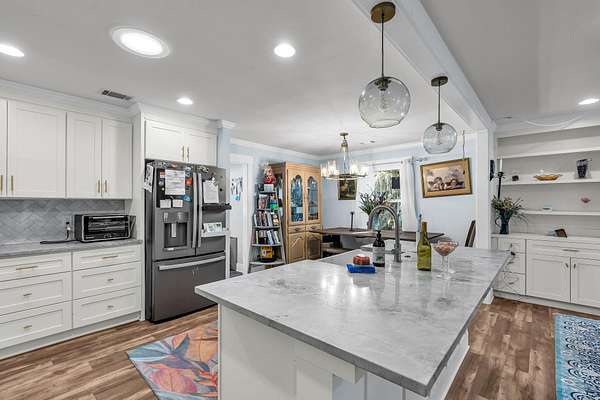 - Beamed Ceilings, Eat-In Kitchen, Family, Kitchen Island, Smooth Ceiling