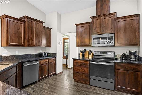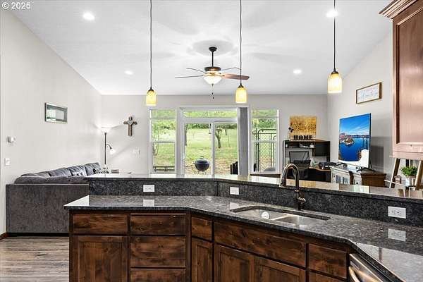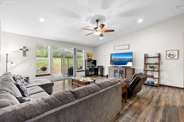 This exceptional property sits in the Beautiful Dixonville area. The gated entry provides a private secure entrance to this newer home sitting on over ten usable acres. The over 2500 sq. ft. home is a single level with a 2 car attached garage, with 4 bedrooms and 3.5 bath. Two of the bedrooms are primary suites ready to accommodate your extended family or guests. The 3.5 bathrooms as well make this home very accommodating. The kitchen has granite counters, an island and nine foot ceilings with an open concept to the vaulted living room. The large concrete back patio is ready for those evening BBQ's. Don't forget the 30 x 50 completely steel shop, with a 14ft ceiling and includes a loft and custom room inside for an office. The monolithic foundation depth for the shop is two foot. The driveway is paved. This lovely property has a seasonal stream and lots of wild life. Don't miss the small orchard. Peace and quiet serenity are the hallmarks of this beautiful property. The zoning is R2, meaning the property can be split into two acre parcels. It's a wonderful opportunity for having room for family members to live close. This is a welcoming Oregon Oasis away from the rest of the world. The VA loan is assumable at 2.75% and $325,000 amount.