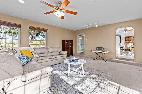 This 3,486 sq ft home is a blank canvas bursting with potential, perfect for those eager to create something truly special. With 4 generously sized bedrooms and 3 bathrooms, it offers plenty of space for comfortable living. The home features two inviting living areas--enjoy a cozy evening by the main-level fireplace or relax around the warmth of the upstairs wood stove. Step out onto the balcony to soak in serene views and imagine endless possibilities. Nestled on 5 acres with prime highway frontage, the property boasts stunning vistas, goat pens, and a large tank--ideal for a hobby farm, country living, or a unique commercial venture. Sold AS-IS, this property is a fantastic opportunity to bring your creative vision to life. Don't miss the chance to transform this space into your dream retreat!