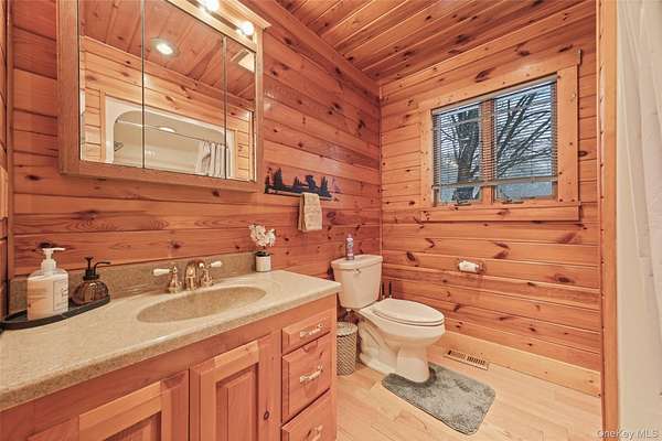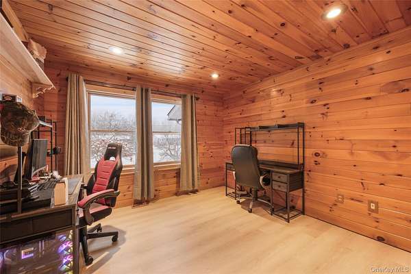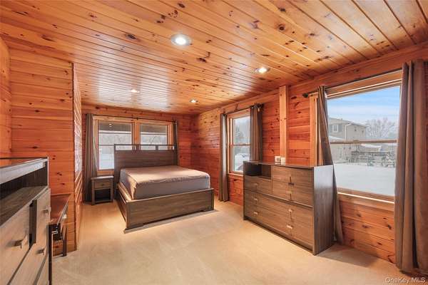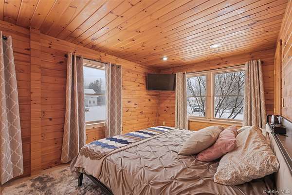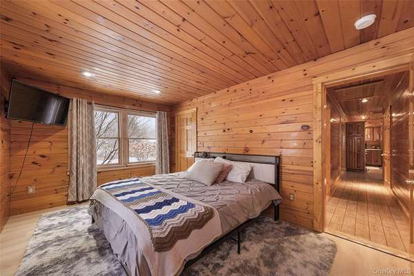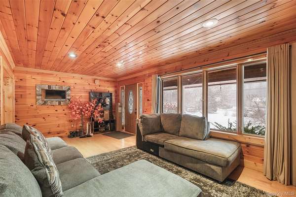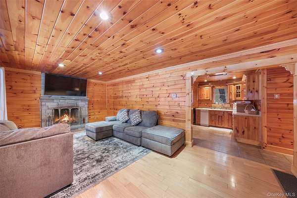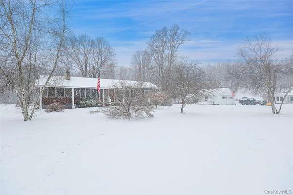 Welcome to your own private retreat-an inviting three-bedroom ranch with timeless charm and a hint of cabin warmth, perfectly nestled on a quiet, flat 3-acre property. Step inside to hardwood floors, abundant natural light, and a welcoming living room anchored by a stunning stone, wood-burning fireplace that instantly feels like home. The spacious eat-in kitchen opens to the deck, making everyday living and entertaining effortless. Both full bathrooms have been tastefully updated, offering comfort and modern style. Outside, the property truly shines. Enjoy open, park-like grounds, mature trees, and your very own private pond-an ideal backdrop for peaceful mornings, relaxing weekends, and four-season scenery. A circular driveway enhances curb appeal while providing convenience and a gracious sense of arrival. Well-kept, full of character, and offering rare space and privacy, this home blends everyday comfort with vacation-style living. A place to unwind, spread out, and truly enjoy the beauty around you. Full House generator, Propane Tank Owned, Completely redone in 2015.