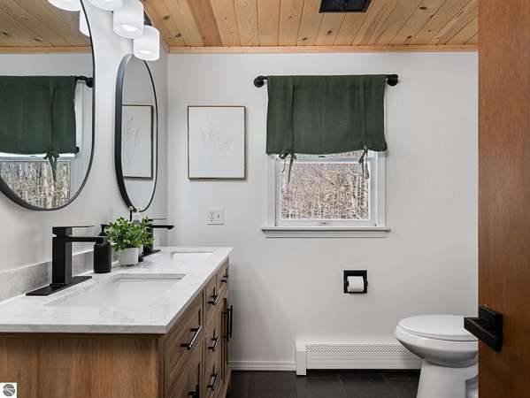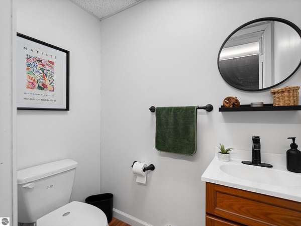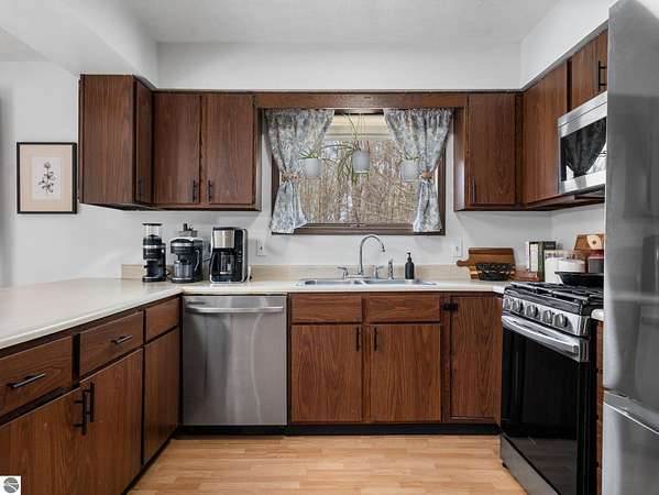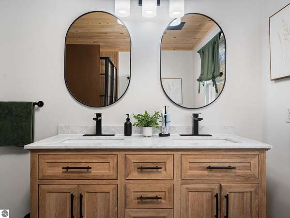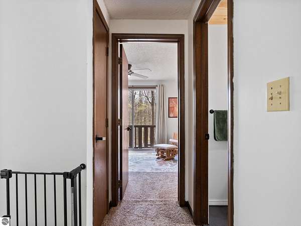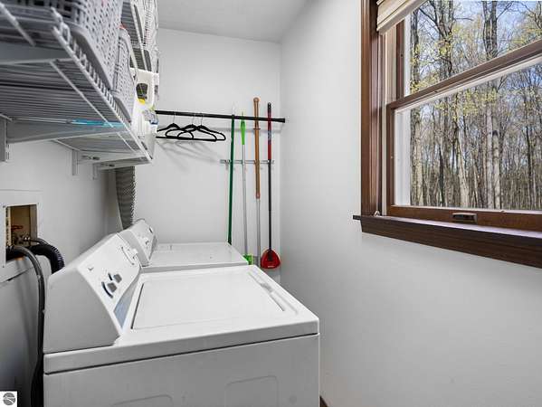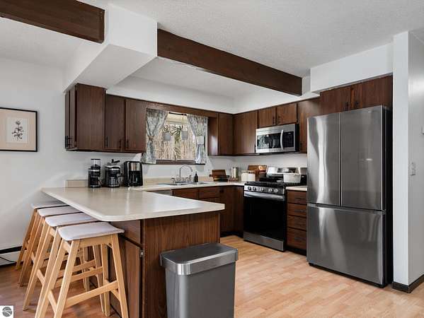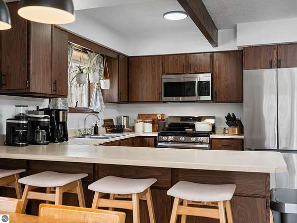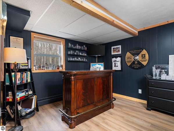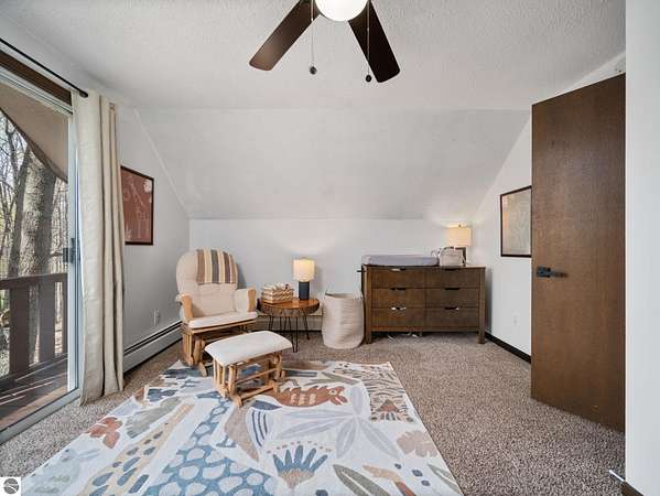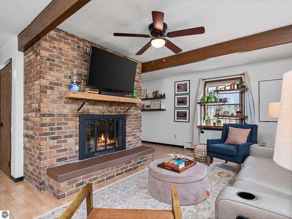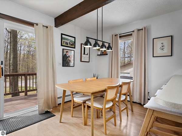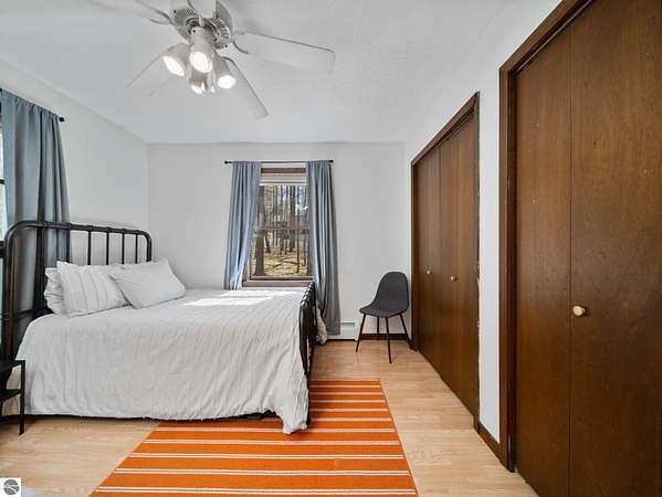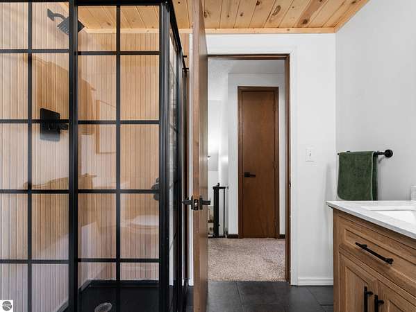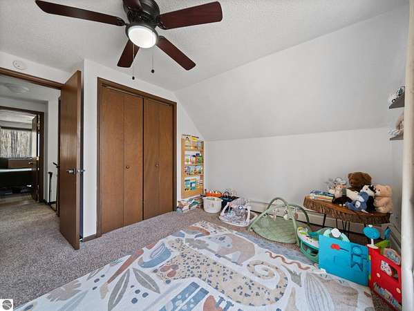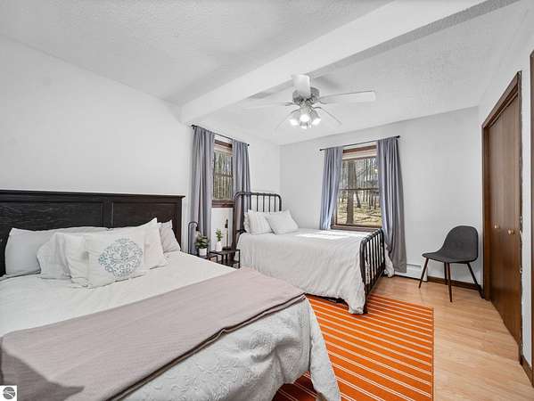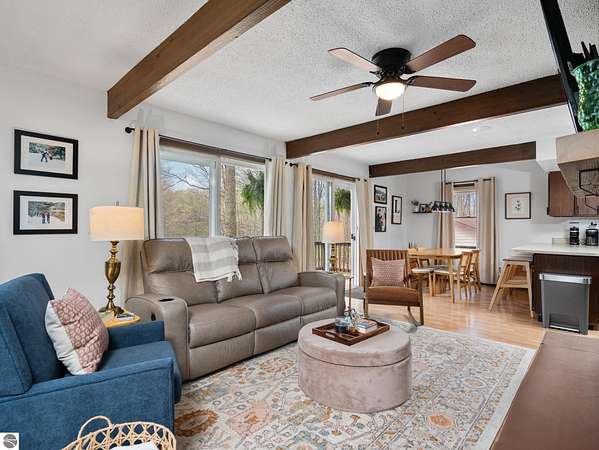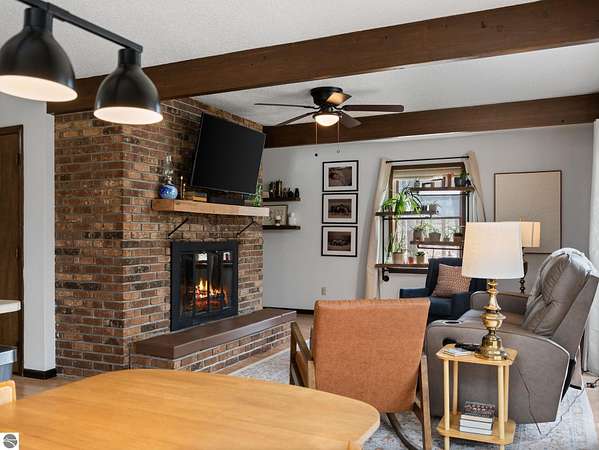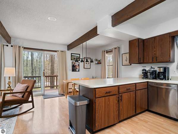 Set on approximately 3 wooded acres between Cadillac and Traverse City, this inviting chalet-style home offers the Up North setting buyers are searching for. Tucked into the trees with a peaceful, private feel, the property features expansive decks, private upper-level balconies overlooking the woods, and a firepit area perfect for enjoying evenings under the Northern Michigan sky. This 3-bedroom, 2.5-bath home offers approximately 1,700 square feet with a main living area showcasing vaulted ceilings, exposed beams, and a beautiful wood-burning fireplace as the focal point, while large windows bring in natural light and scenic wooded views. Upper-level bedrooms open to their own private balconies, adding to the home’s unique character and creating inviting outdoor spaces. The finished walkout lower level features a large family room, creating a comfortable second living area ideal for entertaining, movie nights, or hosting guests, along with a dedicated workout area. A spacious mudroom with built-in lockers is located on the lower level—perfect for storing gear after a day outdoors—while the main floor laundry adds everyday convenience. Recent improvements include a remodeled upstairs bathroom, new kitchen appliances, updated lighting and fixtures throughout, new garage doors, added ceiling fans, basement flooring and trim, enclosed entry stairs with handrails, and freshly painted siding. The wooded parcel offers space to explore and has previously been enjoyed for bow hunting, with nearby trail systems ideal for side-by-side riding. An oversized 2-car detached garage provides excellent storage for vehicles and recreational equipment, and the home is set up for a water softener if desired. Ideal for a year-round home, Up North getaway, or short-term rental opportunity.
