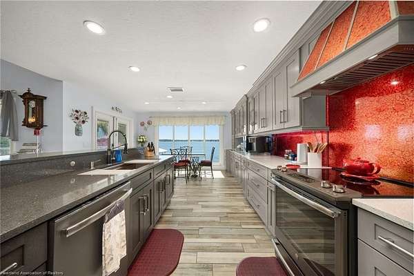 This smart home lets you control lighting, security, audio, and more right from your phone. It includes 7 security cameras and 8+ outdoor speakers for full property coverage. There is a gas fireplace in the great room, and gas is already in place if you choose to add one in the master bedroom. Recent updates include new A/C (2024), a metal roof (2016), and new windows (2018/2019). Additional features include hurricane shutters, lightning protection, and aluminum decking on the porches and dock.