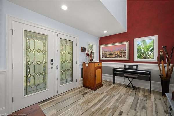 The landscaping gives the property a tropical, garden-style feel. A large Carrie mango tree, banana trees, and other fruit trees add to the charm. Once known as Miss Cindy's Gardens, the property has hosted many weddings and has been featured in Heartland Living Magazine. The current owner, a certified Florida Master Gardener, has created a vibrant, well-kept landscape all around the home.