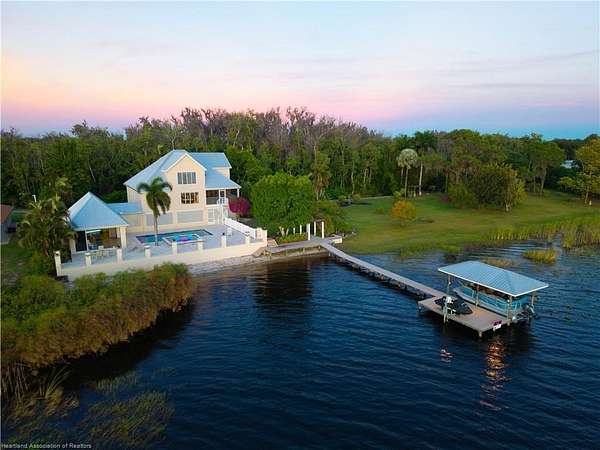 This 3-story lakefront estate sits on 18 acres, including 4 acres along the shores of Lake Sebring -- a 468-acre lake known for fishing, boating, watersports, and sunsets. It offers a waterfront lifestyle with smart-home features, quality finishes, and great outdoor spaces. The home has a Key West-style look with a relaxed coastal feel throughout.