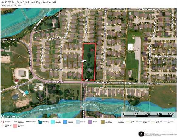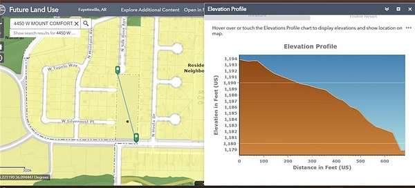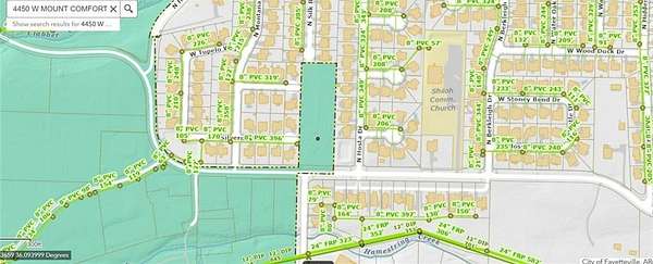 Increasingly rare residential development acreage on W. Mount Comfort Road. Acreage is not currently annexed into Fayetteville, and is surrounded by residential parcels that are in the Fayetteville city limits. Future land map shows residential use. Natural gas, electric, and city water on site. GIS elevation profile, water utilities map, and sewer utilities map are in listing photos.