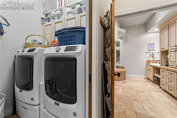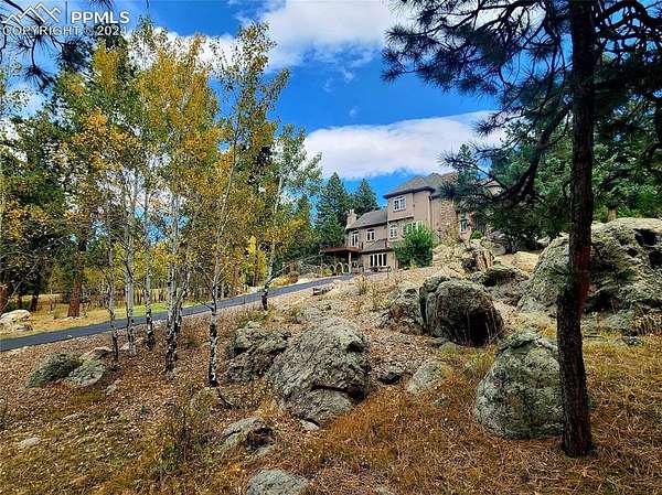 Serenity, beauty, seclusion: Step into a world of unparalleled living with an opportunity to own this astounding estate on 45+ acres adorned with majestic aspen, pine & fir trees. Abundant water rights, No HOA's & a unique chance to own a private mountain w/rock outcroppings & breathtaking views of Pikes Peak, Longs Peak & Co Springs. Build a guest house or a potential to subdivide the property, your possibilities are endless. An automated gated entry & asphalt driveways ensure both security & ease. This remarkable property features a drive-through 48x30 RV barn w/full hookups, 40x30 equip. garage, gardens, greenhouse, 4x4 trails, archery range, hiking & more. Utilizing floors milled from the property's trees this home will allow you to experience warmth w/ radiant floor heat & 8 fireplaces. An exceptional layout tailored for luxury & convenience, the owners retreat on the main level features an ensuite bath, huge closet & private laundry. A spacious kitchen w/nook & formal spaces, perfect for casual & elegant dining. In add'n the living room is a cozy retreat for relaxation, a lg mud room & kitchen pantry to keep organized, & both a private library & den. Upper level features 2 bedrooms w/ ensuite baths, a loft, & laundry room. Lower level has 2 add'l bedrooms, bath, 3rd laundry space, 2 versatile flex spaces & a rec room walking out to a dry below patio & a peaceful view of the backyard. The outdoor space is designed for ultimate privacy & enjoyment, while enjoying the woodburning fireplace on the covered trex deck or gatherings around the firepit near the aspen grove, you'll be relaxed. This outdoor oasis is an extension of your living space, bringing you closer to nature. Home also has an upper level oversized 2 car garage, an add'l lower level side garage & workshop. You will not find another property like this less than 10 minutes to Monument & minutes to schools. This is a true sanctuary of natural beauty that is more than a home, it's your personal haven.
