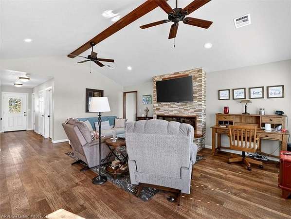 If you've been dreaming of wide-open spaces and sunsets that stop you in your tracks, this 20.18-acre retreat in the mountains of southeastern Oklahoma delivers. Perfectly positioned to capture incredible mountain views and the most breathtaking sunsets you've ever seen, this 2 bedroom, 2 bath home offers the privacy and peace Texas buyers crave - all just 3.5 hours from Dallas and an easy drive for long weekends or a full-time lifestyle change. Inside, the open floor plan welcomes you with a spacious living area anchored by a beautiful stone fireplace - ideal for cozy evenings after a day outdoors. The kitchen is both functional and eye-catching, featuring granite countertops, a center island perfect for gathering, a hammered copper sink that adds warmth and character, and stainless steel appliances. Whether you're hosting friends or enjoying a quiet night in, this space was designed for connection. The split bedroom layout offers privacy for guests, while the large primary suite features a beautiful tile shower and dual closets. A generous laundry room adds everyday convenience. Step outside and the magic really begins. Two private ponds enhance the property - perfect for fishing, relaxing by the water, attracting wildlife, or simply enjoying the peaceful setting. Covered front and back porches invite you to sit, sip, and soak in panoramic mountain views while deer and native wildlife roam the land. It truly feels like your own private sanctuary. Additional features include a carport with storage and plenty of room to expand, explore, or build additional structures if desired. Located approximately: - 45 minutes to Poteau, OK - 1.5 hours to Broken Bow, OK - 3.5 hours to Dallas, TX Whether you're searching for a weekend getaway, hunting retreat, investment opportunity, or a peaceful place to call home - this southeastern Oklahoma property offers freedom, water, views, and space.