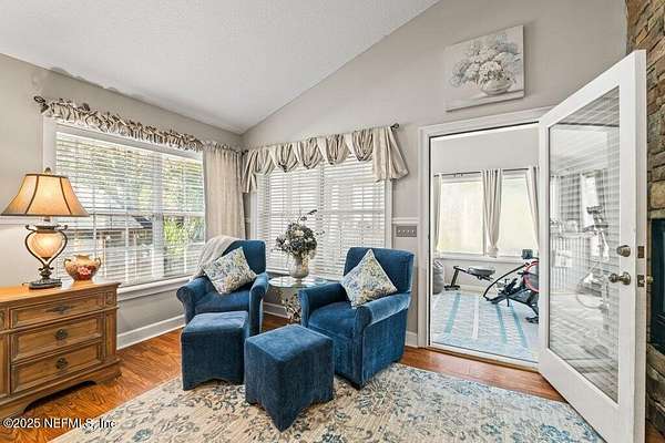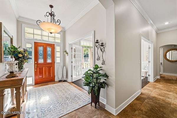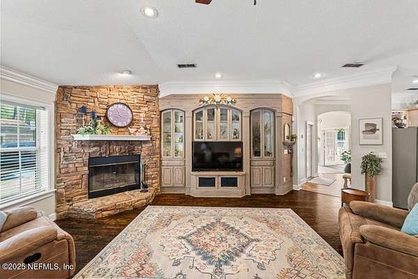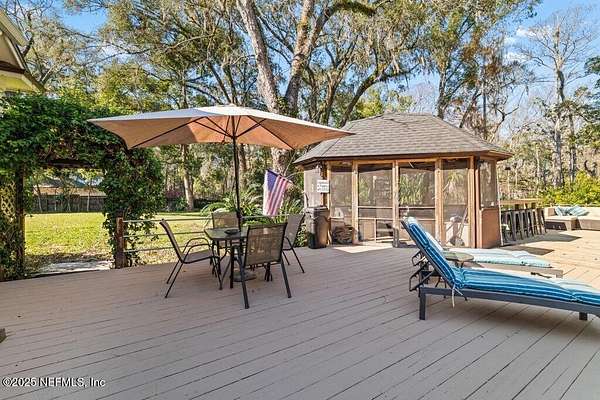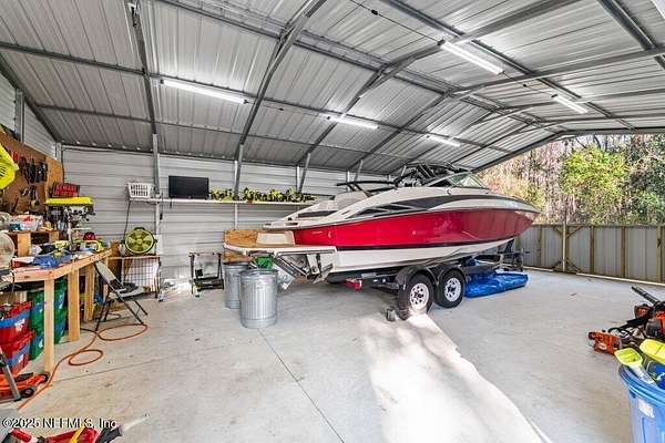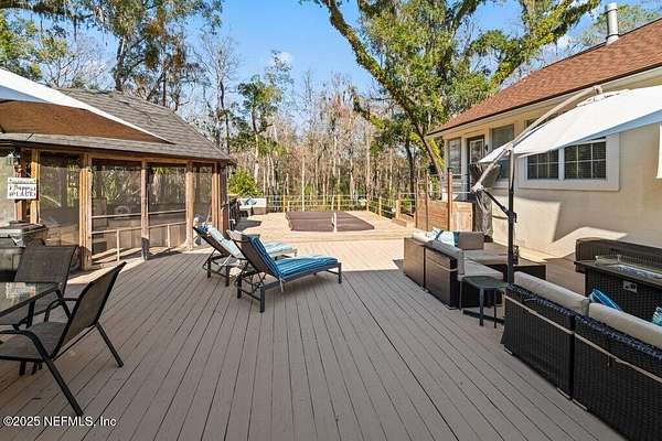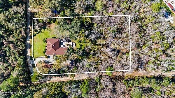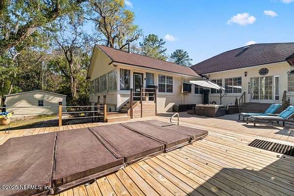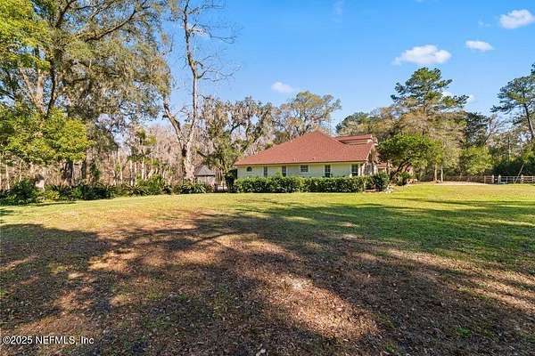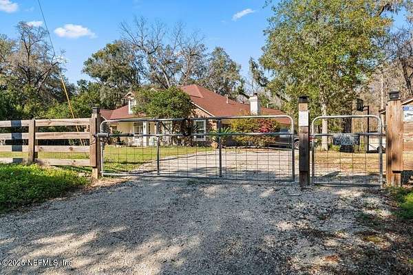 Welcome to your dream home, where country charm meets modern living in this incredible 4 bed / 2.5 bath / 3,128sq ft single story home! Nestled on 2 acres, enjoy entering your home by an automatic gate with the majority of your property fully fenced in. This expansive property is a true entertainer's paradise. The primary suite is a retreat of its own, featuring high ceilings, two generous walk-in closets, and a private lanai offering private access to your deck and sparkling Swim Spa pool. The kitchen is a chef's delight, with granite countertops, top-of-the-line stainless steel appliances, custom cabinetry, and island-perfect for both meal prep and gathering with loved ones. Enjoy added touches such as a breakfast bar, a butler's pantry with a beverage fridge, a convenient half bath, and a walk-in pantry that provides ample storage space. This home boasts a perfect split floor plan, a Jack and Jill bath, and an abundance of storage throughout. Unwind in the cozy living room beside the gorgeous stone wood-burning fireplace or in the luxurious primary bath by the inviting gas fireplace. Step outside to your own private oasis, where an incredible outdoor kitchen, refreshing pool, and a cozy fire pit await, creating the ideal setting for family gatherings and unforgettable evenings under the stars. This home also offers a 2-car garage, carport, and a spacious workshop equipped with WiFi, electric and water with space for all your storage needs. The property includes a pen ready for chickens and plenty of room to cultivate your dream garden. Surrounded by the serene sounds of nature with a tranquil creek at the back, this property is a true retreat with multiple fruit trees and pecan tree. Best of all, there are NO HOA or CDD feesjust pure peace and privacy! Don't wait! Schedule your showing today!