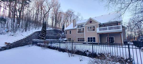 Truly amazing home on a beautiful 5 Acre parcel in a secluded, hilly, wooded area just a few minutes from the village of Slinger. The main floor great room has cathedral ceiling, natural fireplace, beautiful maple woodwork. The kitchen is very impressive with beautiful cabinets, pantry and brick tower accenting the stove top. Dinette, breakfast island and access to the back porch. Dining room has a coffered ceiling with wood accents. Primary bedroom has its own bath with whirlpool tub, shower, 2 sinks, 2 walk-in closets. 2 more bedrooms,1.5 baths, laundry room complete the main level. The exposed basement has a family room with gas fireplace, bar, game room, 2 bedrooms, 3rd bath. Fenced in patio with in-ground pool. Interior & exterior musical entertainment systems. Paradise is waiting.
