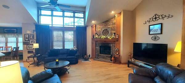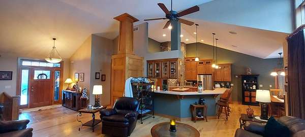 - Cable TV Available, Central Vacuum, Gas Fireplace, High Speed Internet, Intercom/Music, Kitchen Island, Natural Fireplace, Pantry, Split Bedrooms, Vaulted Ceiling(s), Walk-In Closet(s), Wet Bar, Wood Floors