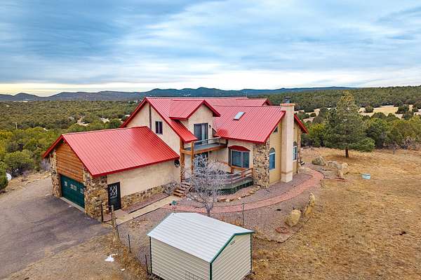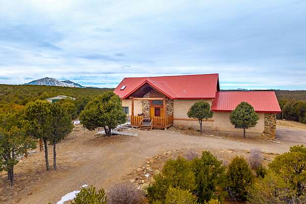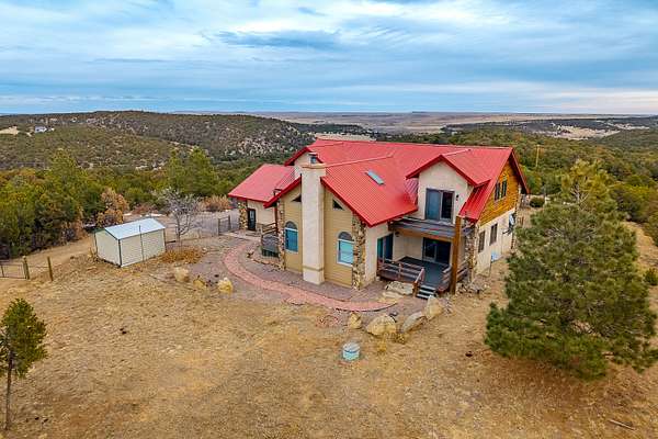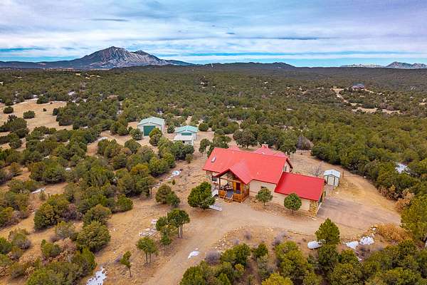 Discover 36.6 acres of Colorado mountain living with this custom-built home that combines comfort and functionality. This property delivers the space and freedom that rural enthusiasts dream about. The heart of the home showcases a large living area featuring a striking rock fireplace and patio access, perfect for relaxing after a day exploring your private acreage. An open layout connects the kitchen and dining areas, creating a natural flow for everyday living and entertaining. The main level primary suite offers a garden tub, a walk-in shower, and direct deck access with mountain views. A guest bath and laundry room complete the main floor. Upstairs, two additional bedrooms provide deck access and spectacular vistas that never get old. One bedroom includes a three-quarter bath for added convenience and privacy. Outdoor enthusiasts will appreciate the remarkable outbuildings on this property. A 30X50 RV workshop handles big projects and toy storage with ease, while a 24X40 garage provides additional space for hobbies and equipment. Two storage sheds add to the highlights of this property. The land itself features beautiful pinion trees, juniper, cedar, oak brush, ravines, and seasonal pond, creating a serene natural setting. This property represents an exceptional opportunity for those seeking space, privacy, and Colorado character. Schedule your showing today.