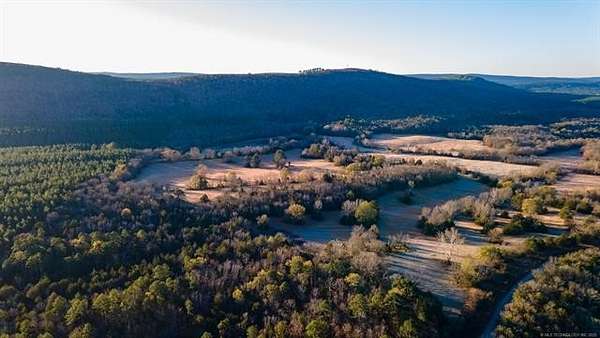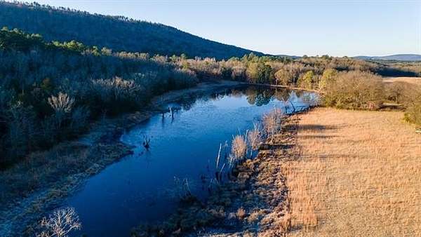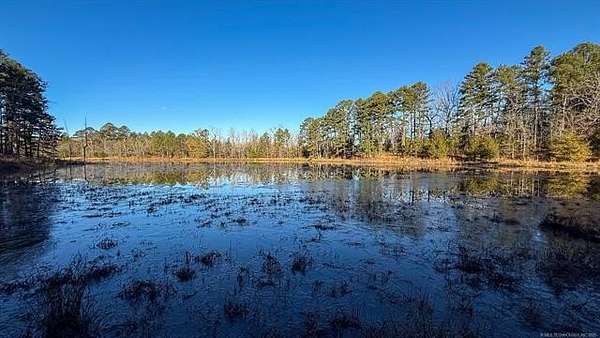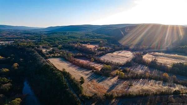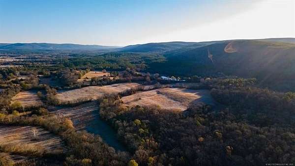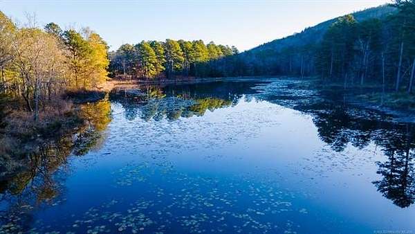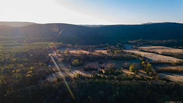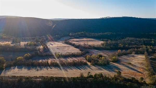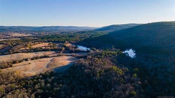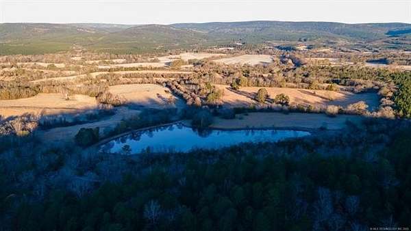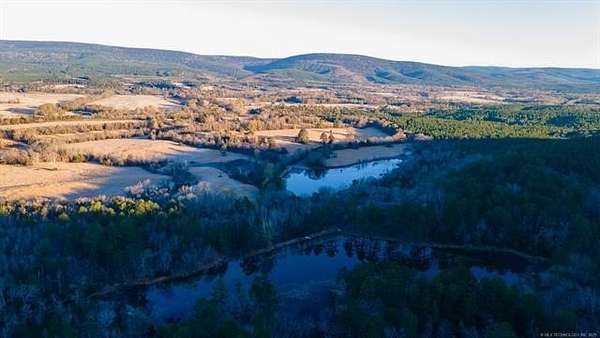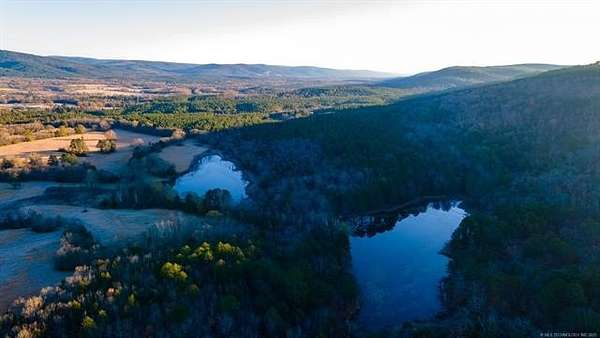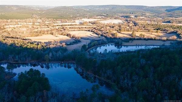 Hidden behind a mile-long, tree-lined private driveway, this exceptional 170-acre ranch offers a rare blend of mountain views, productive pasture, abundant water, and unmatched privacy in the heart of Southeast Oklahoma. A solidly built, locally sourced stone home featuring three bedrooms and two bathrooms sits on a hill at the edge of the mountain, overlooking a scenic valley and two large spring-fed ponds, one to the north and one to the south. From the home, it is common to watch eagles soaring overhead and diving to catch fish, waterfowl working the ponds, and whitetail deer stepping out of the timber to drink along the shoreline. Mornings are especially peaceful as the mountain to the north casts long shadows across the valley, creating a shaded and quiet start to the day. The land includes open valley pastures that are fenced and cross-fenced and are currently used for livestock and hay production, consistently producing approximately 200 to 250 round bales annually. Two large spring-fed ponds provide excellent fishing, dependable water, and strong waterfowl habitat, while the property backs up to forestry land, enhancing privacy and creating a natural wildlife corridor in an area well known for exceptional whitetail deer hunting. The home is structurally sound and full of character, with opportunities for cosmetic updates to flooring, carpet, and appliances, and includes a new septic system installed in 2020 along with both rural water and a private well. Located just across the county road from the Little River, a popular destination for fishing and recreation, the property is also within convenient driving distance to Sardis Lake, Hugo Lake, Broken Bow Lake, Robbers Cave State Park, and multiple state wildlife management areas, making this an ideal full-time residence, working ranch, recreational retreat, or long-term legacy property.