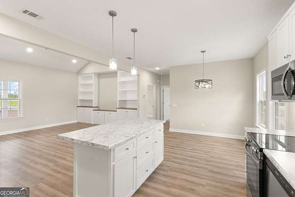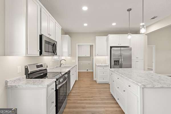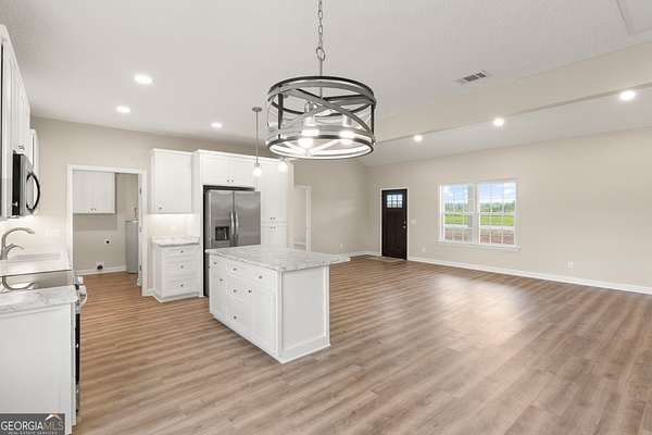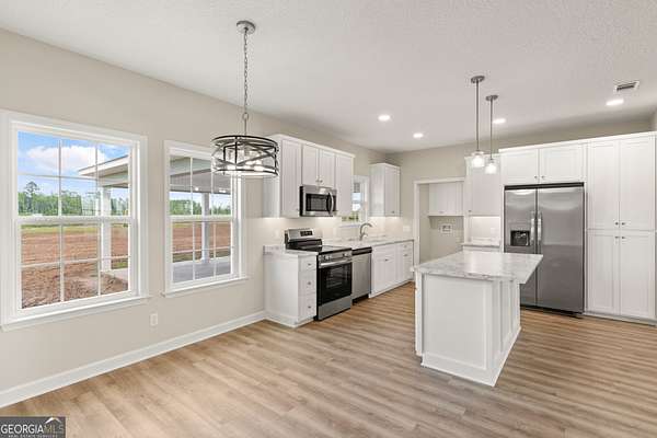 Discover this beautifully built new construction home, crafted with pride by John Ellis Construction, a respected local builder with a long-standing reputation for quality and attention to detail. Set on a spacious 1.9-acre lot, this property offers the perfect blend of comfort, convenience, and rural charm, without the restrictions of an HOA or the need for flood insurance. Inside, you'll find a well-designed 1,680 square foot layout featuring three bedrooms and two full bathrooms. The open-concept living space is filled with natural light and offers a warm, inviting atmosphere. Luxury vinyl plank flooring runs throughout the main areas of the home, while carpeted bedrooms provide extra comfort. The heart of the home is the master suite, which boasts a large tile shower, double vanity, generous storage, and a dedicated dressing vanity-a true retreat at the end of the day. Step outside to enjoy a quiet moment on the covered front porch or take advantage of the attached carport that provides convenient covered parking or convert to an outdoor entertainment area. The property is served by private well and septic systems, adding to the self-sufficiency and low-maintenance appeal of rural living. Located just across the highway from a county park, this home offers easy access to outdoor recreation. The county is actively working to pave the road leading into the development, ensuring improved access and long-term value. Best of all, you're only 30 minutes from the shopping, dining, and beaches of Brunswick and the Golden Isles, and also within 30 minutes from Waycross, making this an ideal location for those who want the peace of the countryside without being far from town. Whether you're looking for a peaceful place to settle down or a move-in ready home with room to breathe, this property delivers comfort, space, and quality, all wrapped up in a beautifully built new home.