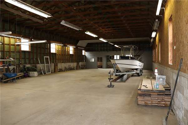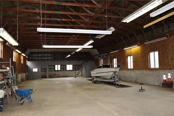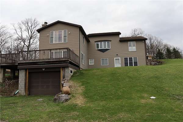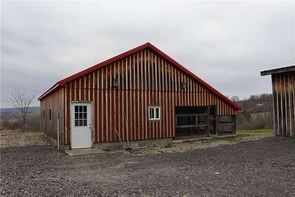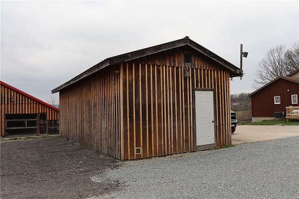 The perfect combination of Primary Home with Structures to accommodate your business. 3 Bedroom ranch with detached 40' x 100' (16' Ceiling Height) commercial use building, Second Detached building with heat and water currently used as a "Pet Motel", Outdoor wood burner in its own wood storage shed used to heat the large building, 40" x 50" foundation ready for a new building. The home features 3 bedrooms including an ensuite primary bedroom, eat-in sized kitchen, both main level laundry and second lower level laundry, family room with stone woodburning fireplace, Native wood paneling and trim, Solid oak 6- panel interior doors. Rear wrap around deck, side entry deck and front enclosed porch. Excellent long distance views. No Zoning.