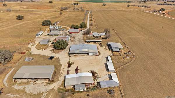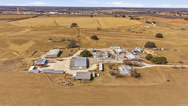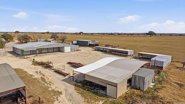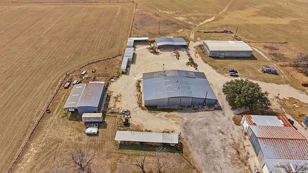 3.36-acre commercial and farm & ranch property featuring approximately 16,000 sq ft of total building improvements, including a 7,500 sq ft enclosed warehouse/shop with concrete slab, five overhead doors, three sliding doors, three walk-through doors, and a 20' x 30' interior office space, plus a 1,634 sq ft open-roof extension providing additional covered workspace. Four additional open-style buildings totaling approximately 6,500 sq ft provide flexible covered storage and equipment parking. Electric and water utilities are connected. The property also includes approximately 25,000 sq ft of stabilized road-base yard ideal for equipment storage, fleet parking, or material staging. Property and acreage include the access road from the buildings to FM 536. Available for sale or lease.