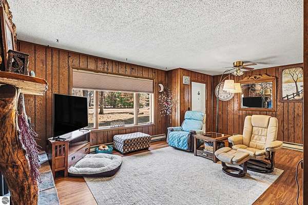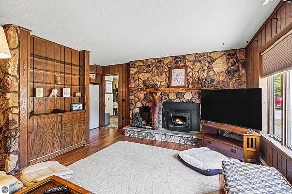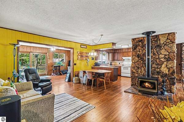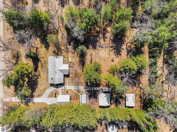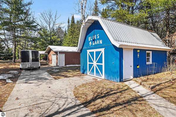 So much to offer with this one! This home has two large bedrooms and open concept living area. There is a bonus space that would be a great craft room, home school, office, kids play room...so many possibilities. Also, a great closed in porch with mud and laundry room attached. There is a wood burning fireplace, propane stove and electric baseboard heat. Also a generac whole home generator, just in case! The driveway is concrete with three separate out buildings! There is a workshop, a barn style garage, and a two car garage. This property also features a large covered area for gatherings, all with concrete and electric. Nestled on one and a half acres within walking distance to public land and trails. Don't wait to see this one!