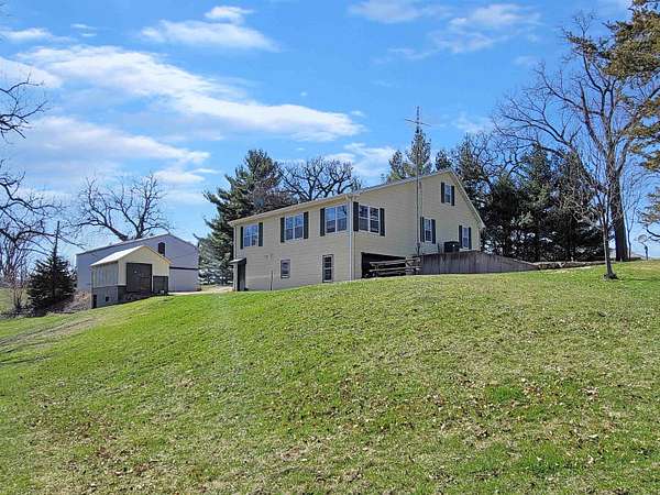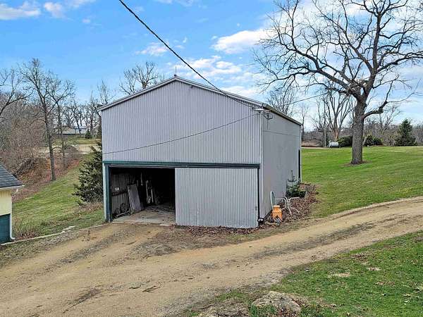 Charming country retreat sited on 1.65 acres featuring gorgeous seasonal treed views of the valley below, huge 50" x 22' pole building, additional shed for storage/workshop/garden, two car tandem under garage, and a great location halfway between Galena and Scales Mound offering convenience to either. Airy main level houses generous kitchen with loads of cherry cabinetry, large eat-at counter, access to huge, covered deck, and an additional breakfast nook with work desk and laundry area, light filled living room with room to relax and lots of windows to take in the views, large formal dining room with wood floors and ample space for guests, main level master bedroom with ceiling fan, wood floors, and access to bathroom, and additional cozy guest bedroom. Expansive upper-level bedroom spans the length of the house and has room for sitting area and multiple closets. Head to the lower level to find a spacious family room featuring full size bar and sink plus a warm and inviting gas stove with brick hearth and surround, nicely appointed full bathroom, utility room, and access to tandem garage. Beautiful open yard space offers plenty of room to enjoy the outdoors and take in the natural scenery. Pole building has doors in front and rear, and both pole building and garden shed have electric. Newer roofing (2019) and new well (2021). Radon mitigation system in place. Close proximity to Galena Cellars Vineyard, and just outside The Galena Territory. A great location and exceptional package combining rural beauty, function, and style. Scales Mound School District. Current taxes reflect multiple exemptions.