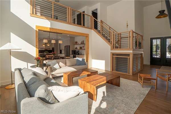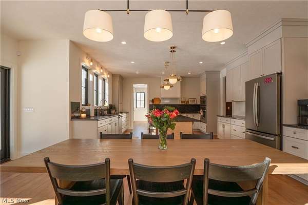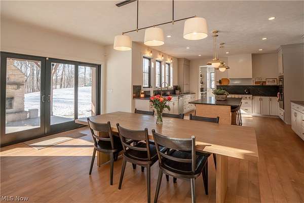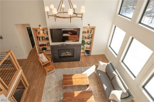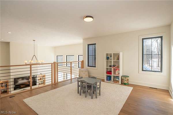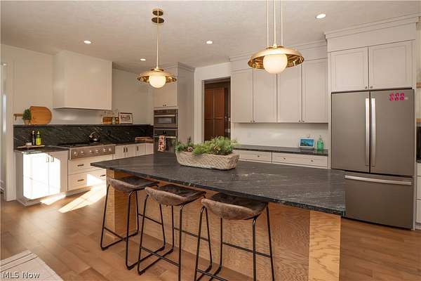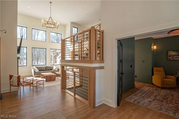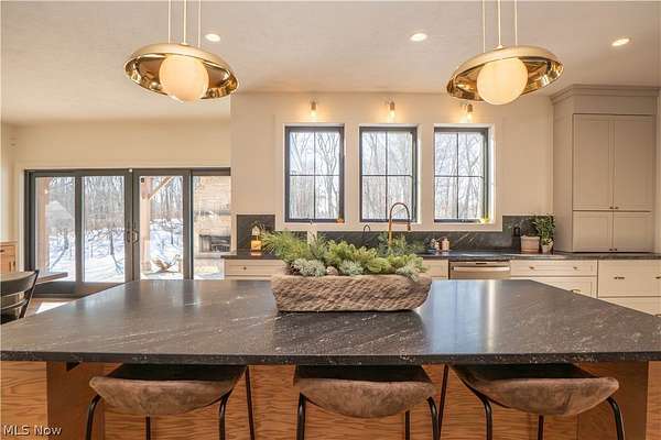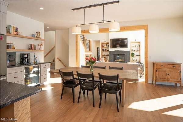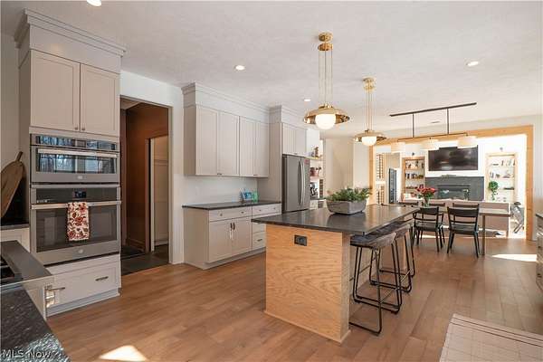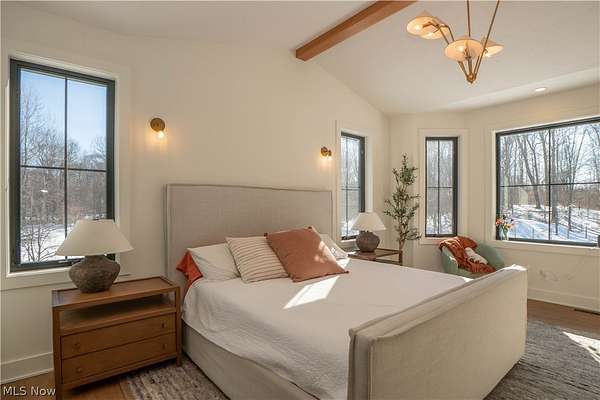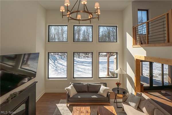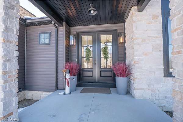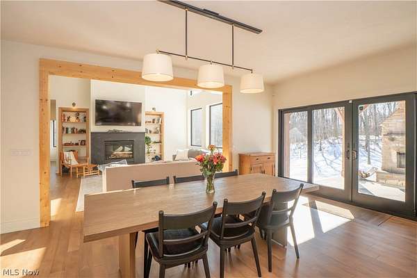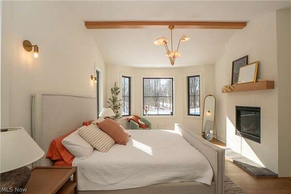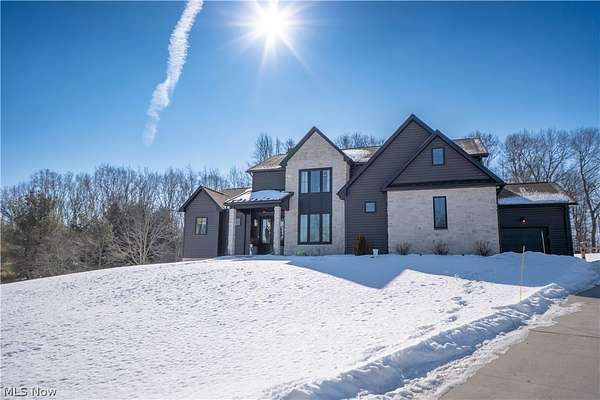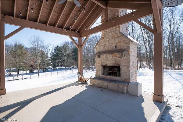 Tucked away on 2 peaceful acres in a quiet cul-de-sac, this beautifully crafted 2022 build blends luxury with an incredibly cozy, welcoming feel. From the moment you step inside, warm wood floors, exposed beams, and stunning natural light create a space that instantly feels like home. The great room features soaring ceilings, built-ins, and a fireplace that anchors the space perfectly for gathering. The eat-in kitchen is both stylish and inviting with a large island, stacked ovens, Cafe six-burner cooktop, walk-in pantry, coffee bar, and sliding doors that open to a patio with its own fireplace-ideal for relaxing evenings or entertaining. The first-floor primary suite is a true retreat with vaulted ceilings, wood beam accents, fireplace, spa-like bath with dual vanities, soaking tub, walk-in tile shower with dual rain heads, and an impressive custom closet. An office/den, mudroom with built-ins, and first-floor laundry add everyday function and comfort. Upstairs offers a loft overlooking the living space, 3 spacious bedrooms, one with a private bathroom and the others shared a Jack-and-Jill bathroom. The finished walk-out lower level provides additional living space, full bath, and easy access to the fenced backyard. With 3 fireplaces, a 3-car attached garage, and a setting that offers privacy and space while still feeling warm and inviting, this home perfectly balances modern design with that rare "homey" charm.