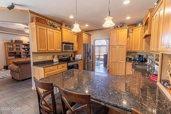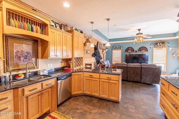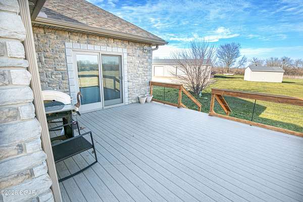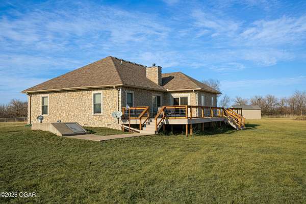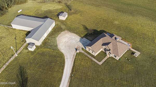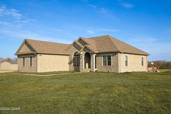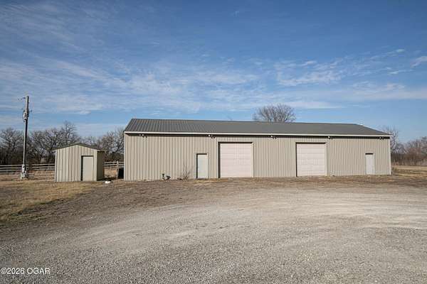 Welcome to peaceful country living in Lamar! This beautiful 3-bedroom, 2.5-bath all-brick home sits on 5 spacious acres, offering the perfect blend of comfort, functionality, and wide-open space. Inside, you'll find a thoughtfully designed layout with generous living areas, a well-appointed kitchen, and plenty of natural light throughout. The primary suite provides a relaxing retreat with a private bath, while two additional bedrooms offer flexibility for family, guests, or a home office. Step outside and enjoy everything this property has to offer. The 5-acre setting provides privacy and room to roam--ideal for gardening, recreation, or simply enjoying the peaceful surroundings. A 30'x80' steel on frame building has a 30'x40' recreational room with a half bath and 10'x10' overhead door and is perfect for hobbies or entertaining, 25'x30' workshop space with a 10'x10' overhead door, and a 25'x30' storage area. The 40'x66' steel on frame machine shed/hay barn is closed in on 3 sides and has 2 horse stalls. For added peace of mind, the property also includes 2 generators (one for the house and one for the shop) as well as a storm shelter, and a wood burning furnace for the house. If you've been searching for a well-built home with acreage and room to grow, this Lamar property delivers the space, security, and country charm you've been looking for.