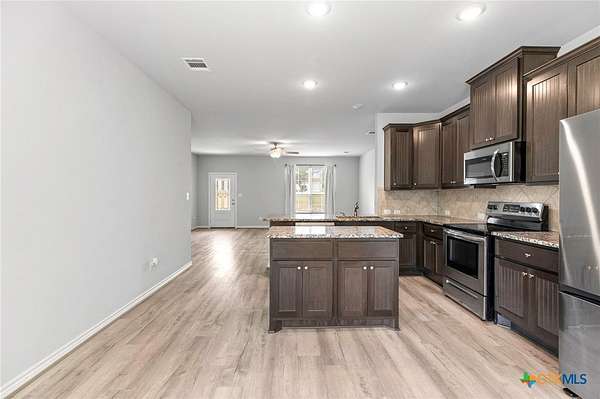 Welcome to your own slice of Texas in the country, tucked away on 3.42 oak-covered acres in a quiet custom home neighborhood in Gonzales. This all-brick, single-story Tilson home was built in 2023 and has all the modern features you're looking for-granite countertops, stainless steel appliances, custom cabinets, and a large center island that's perfect for casual meals or entertaining. The open floor plan keeps the kitchen, dining, and living areas connected, while the split layout gives the primary suite extra privacy from the two secondary bedrooms and shared bath. You'll find luxury vinyl plank flooring throughout most of the home-easy to maintain and great for pets-with soft carpet in just the two secondary bedrooms. The two-car side-entry garage adds great curb appeal, and the property even comes with RV hookups, so it's ready for guests or travel adventures. Enjoy the peace and space of country living while still being close to everything. It's just a short drive to I-10, making commuting to Seguin, Luling, or Lockhart a breeze. Spend weekends floating the Guadalupe River, grabbing BBQ in Lockhart, exploring historic downtown Gonzales, or heading into San Antonio or Austin for a day trip. This home offers the perfect balance of quiet retreat and easy access to some of Central Texas's best spots.