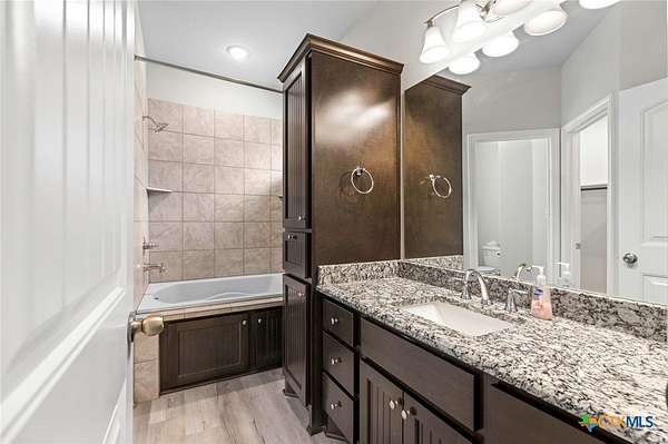 - Granite Counters, High Ceilings, Kitchen Dining Combo, Kitchen Family Room Combo, Kitchen Island, Open Floorplan, Pull Down Attic Stairs, Split Bedrooms, Tub Shower, Vanity, Walk In Closets
