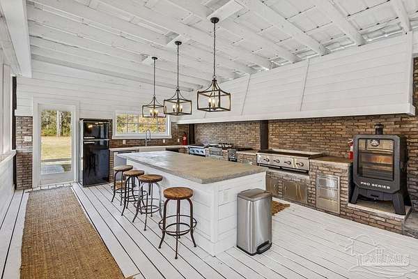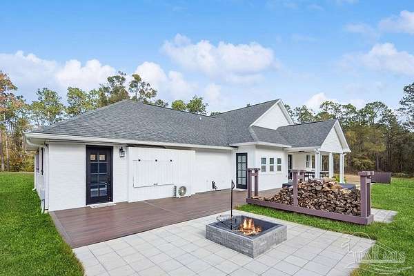 Estate Living on 10 Acres with Guest Home & Year-Round Commercial Kitchen Built for Entertaining. Paved Driveway with Gated Entrance. $150,000 Tesla Solar System. An elevated paved drive leads to a remote-controlled gated entrance, opening to a beautifully transformed property set well off the road and buffered by a natural tree line. All structures are connected by walkways, creating a seamless and functional layout. Several acres are cleared and ready for a garden, playground, pool, or future expansion. The main residence offers approximately 1,879 square feet with three bedrooms and two bathrooms, featuring a spacious split floor plan and abundant windows that flood the home with natural light. A wraparound front porch enhances the indoor-outdoor living experience, and the home includes an attached oversized 675 sq ft insulated and air-conditioned two-car garage. The kitchen and pantry are designed for serious home chefs, featuring stainless steel appliances, a large center island, generous counter space, an oversized pantry, and custom spice racks--ideal for hosting gatherings of any size. A detached 1,088 sq ft guest home provides outstanding flexibility for multi-generational living or extended guests. It includes an efficiency suite with kitchen and bathroom, a multi-purpose room currently used as a fitness center, and an additional bedroom with built-ins. The detached 816 sq ft year-round commercial kitchen and entertaining space serves as the centerpiece of the estate, rivaling professional-grade setups with deep fryers, smoker, griddle, grills, ice maker, gas burner stovetops, and more--perfect for large-scale entertaining year-round. Additional features include a gun range, a well house with a 130-foot deep well and neutralizer system, a sprinkler system, and a $150,000 Tesla solar system providing exceptional efficiency. Utility costs average approximately $50 per month, covering all three structures and the sprinkler system