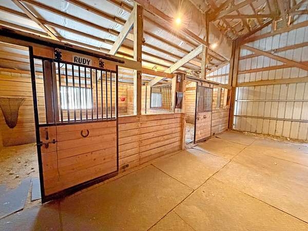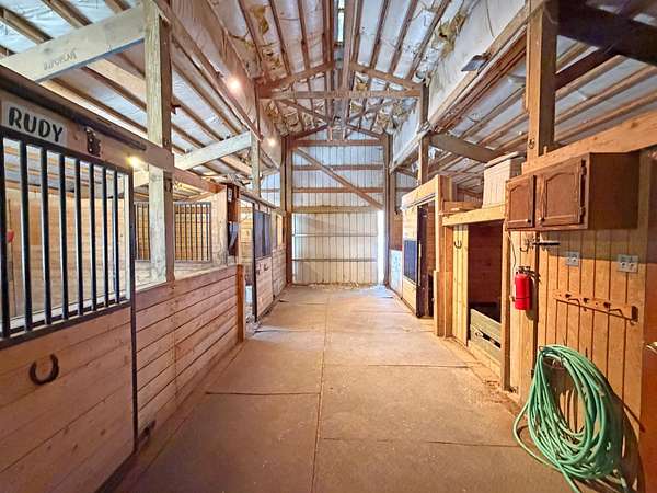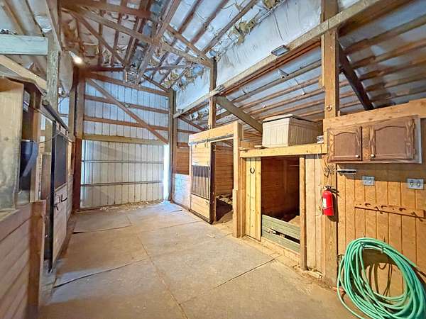 Extensively updated 2BR/1BA home on over 7.5 acres, ideal horse property. Features include a full walkout basement, updated plumbing and electrical with 200-amp service, heavy-duty A/C outlets, solid core doors, newer exterior doors and windows (2024), Ridgemax flooring throughout the main level (2024), remodeled bath with walk-in shower, updated kitchen counters and sink, and new septic (2025). Furnace replaced in 2021, roof (2017), Generac whole-house generator (2022), and roof-mounted antenna. Property includes a 1-car garage, 3-season gazebo, horse barn with 3 stalls (potential for 4), tack room and loft, wood fencing, outdoor riding arena, and cleared riding trails.